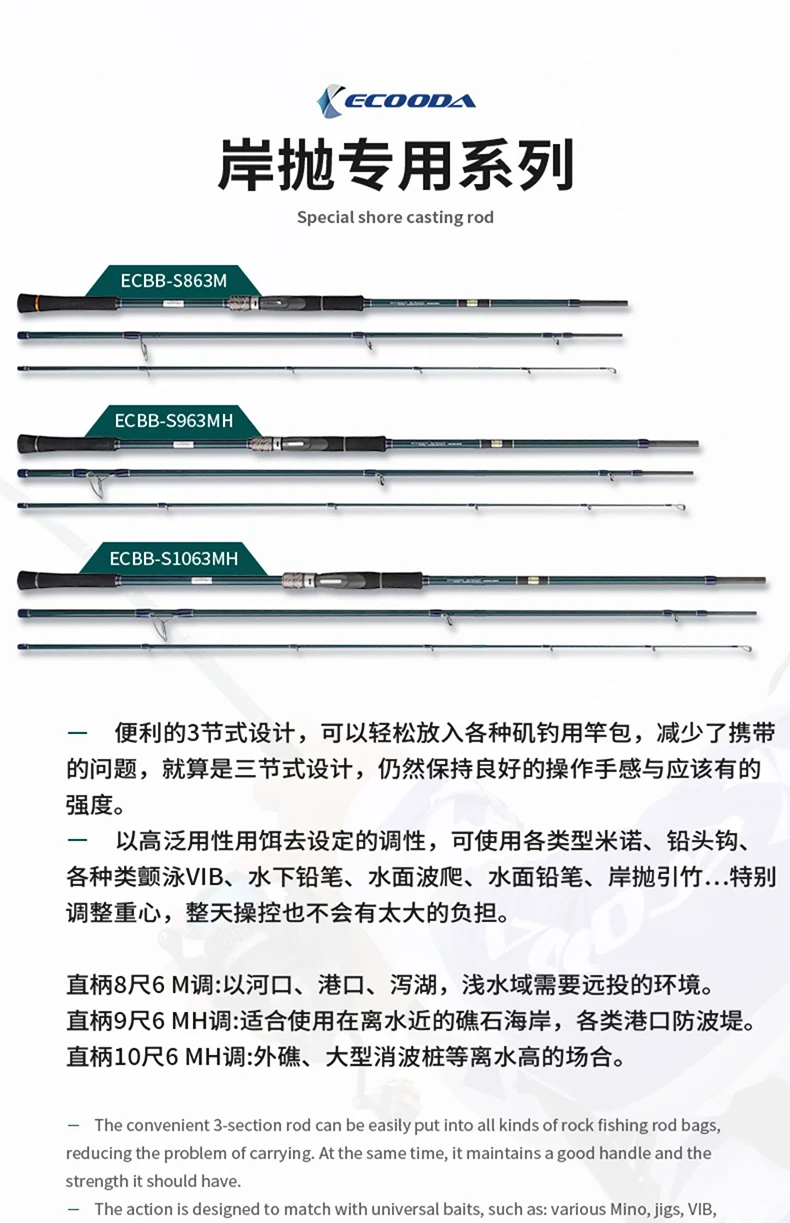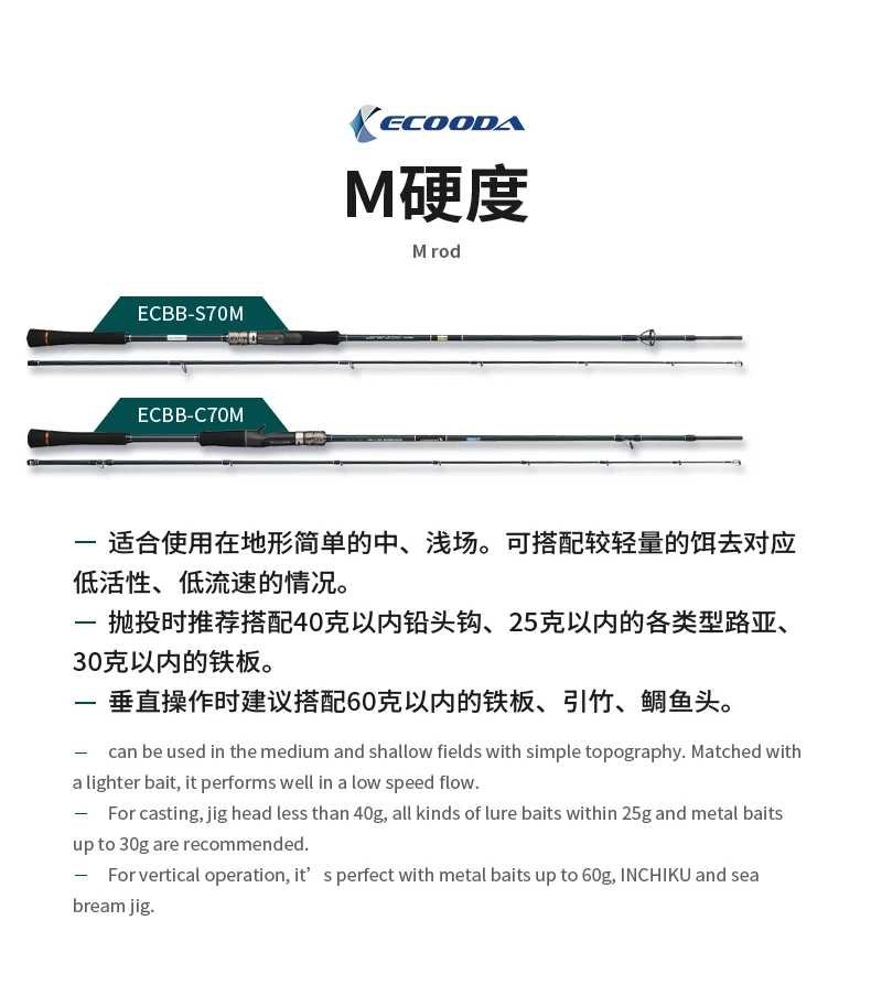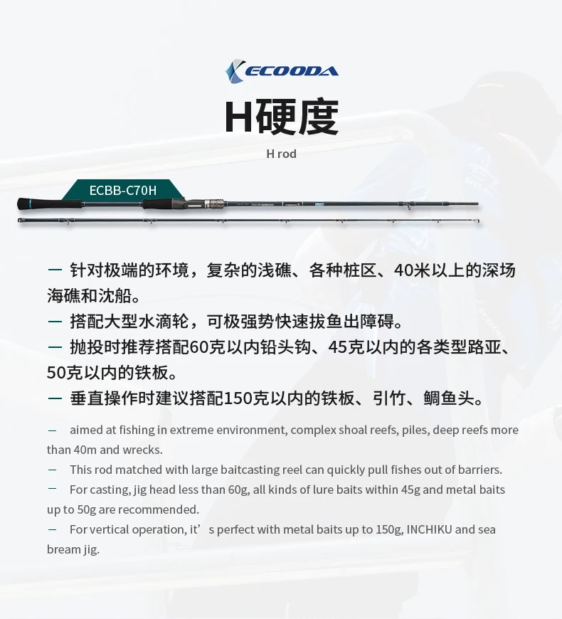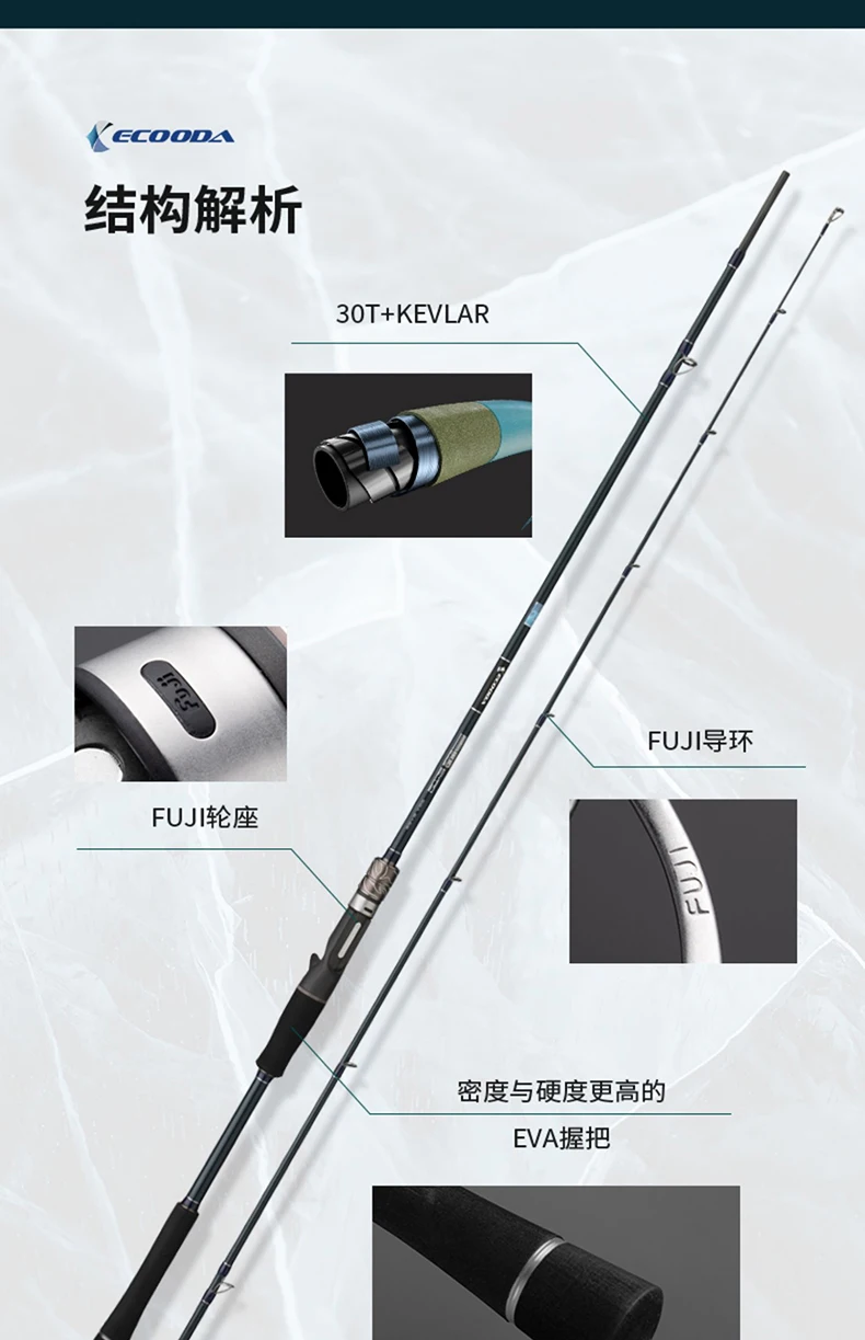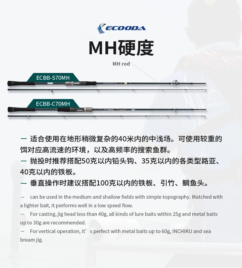 ECOODA-caña de pescar de lubina ECBB, piezas Fuji, giratoria, de fundición, PE1-5 # barco en alta mar, Universal, peso del señuelo 8-40g, 2,1-3,2 M