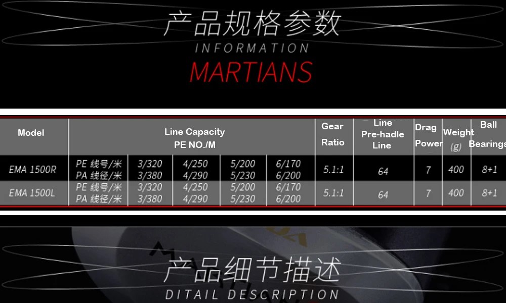 Ecooda-carrete Digital para barco EMA1500L/EMA1500R, 5,1: 1, 7kg, DARG POWER, mano izquierda y derecha, equipos De Pesca