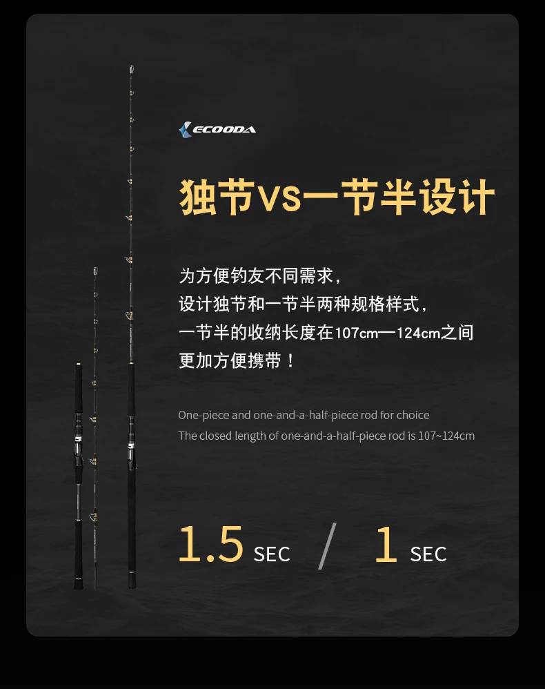 ECOODA EEJDM-varilla de Jigging de velocidad eléctrica/lenta, piezas Fuji completas, anillo de guía en espiral, varilla de mar profunda, 1,75/1,8/1,9 M, 16-20KG, 1 segundo, PE1.5-10 #