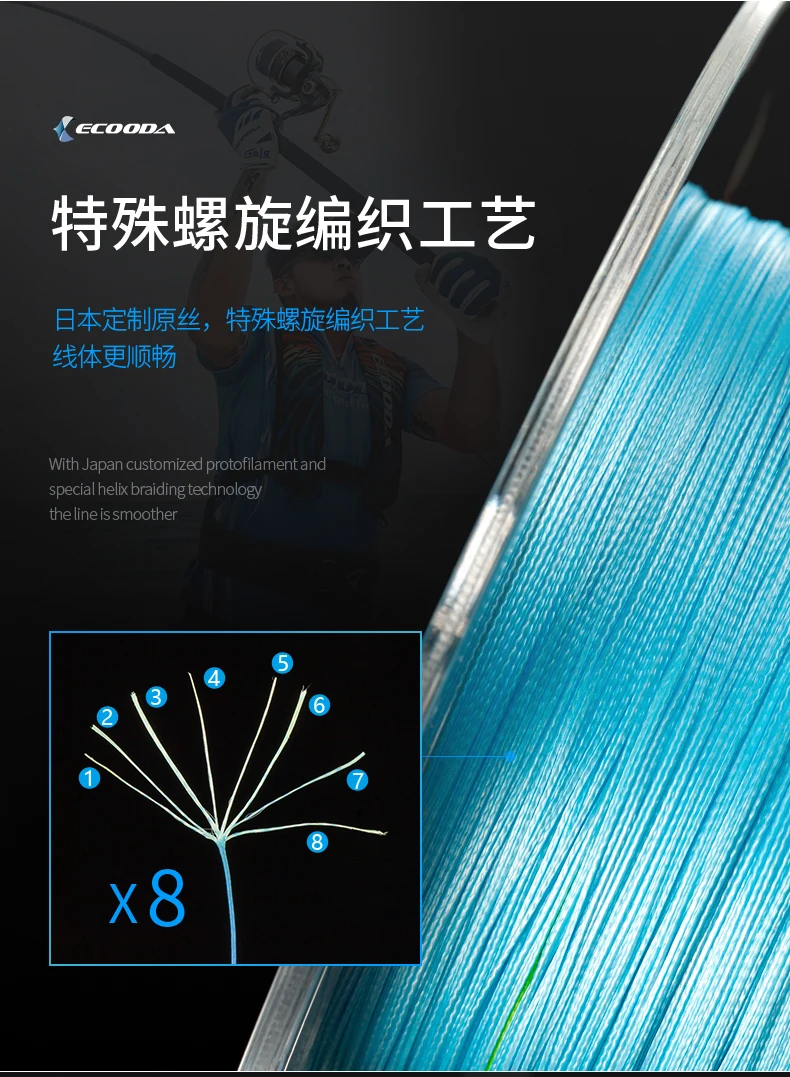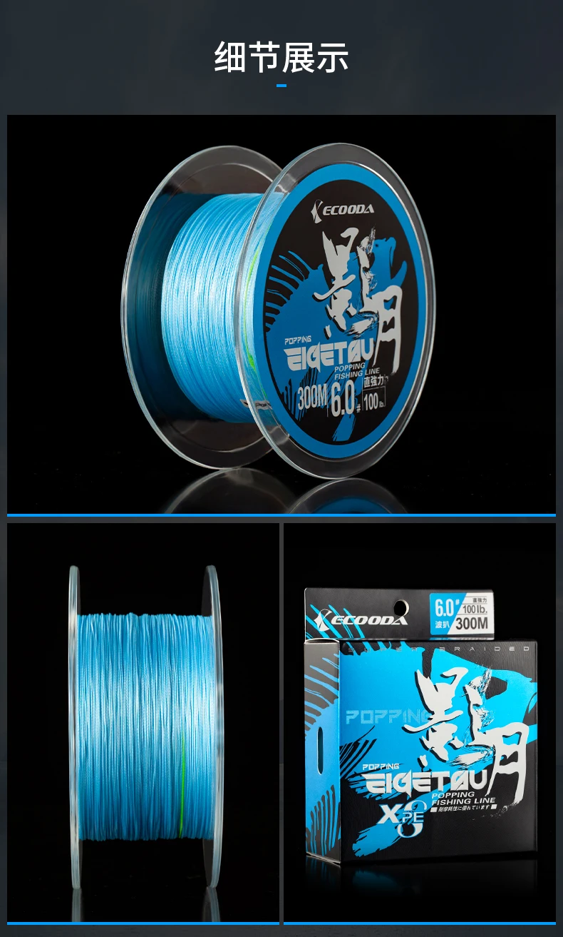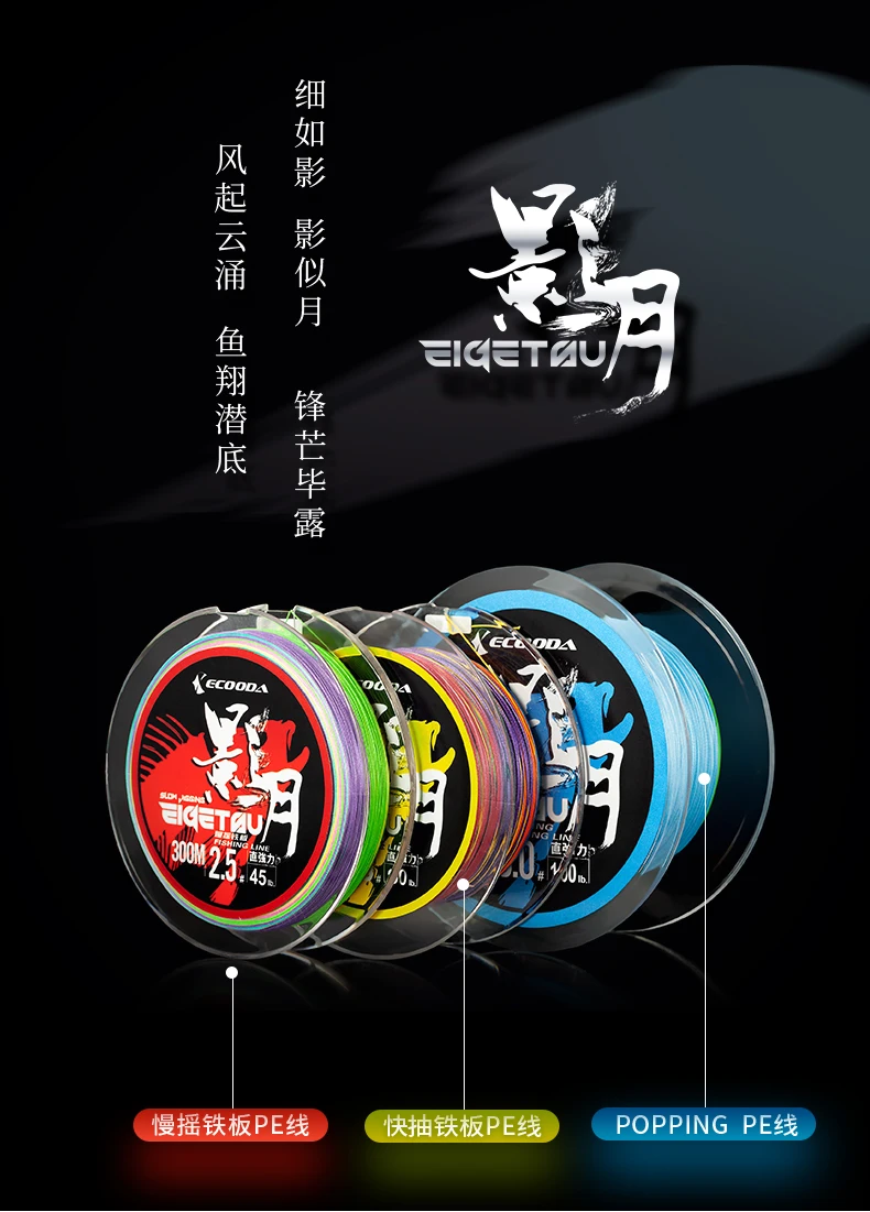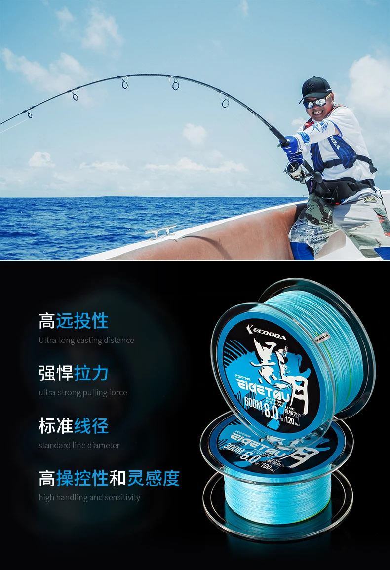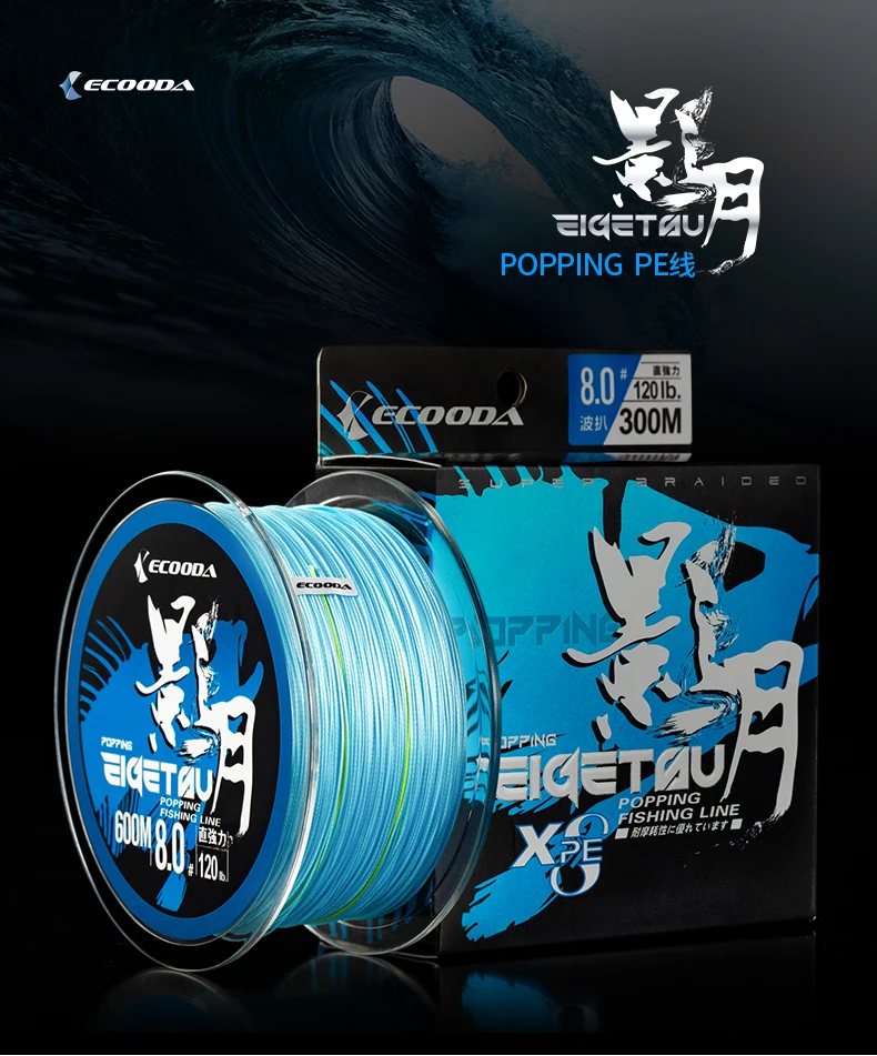 ECOODA EIGETSU Popping-Línea de PE multicolor, sedal de pesca trenzado de 8 hebras, 300m, 600m