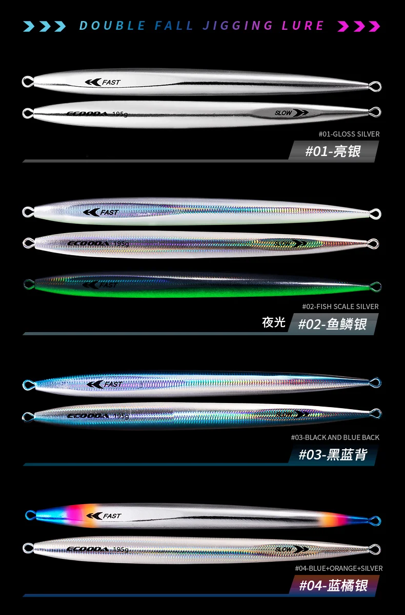 ECOODA-señuelo de Jigging doble otoño, 45-345g, pez de plomo Artificial, cebo de Metal, pesca en barco de agua salada, Jigger rápido