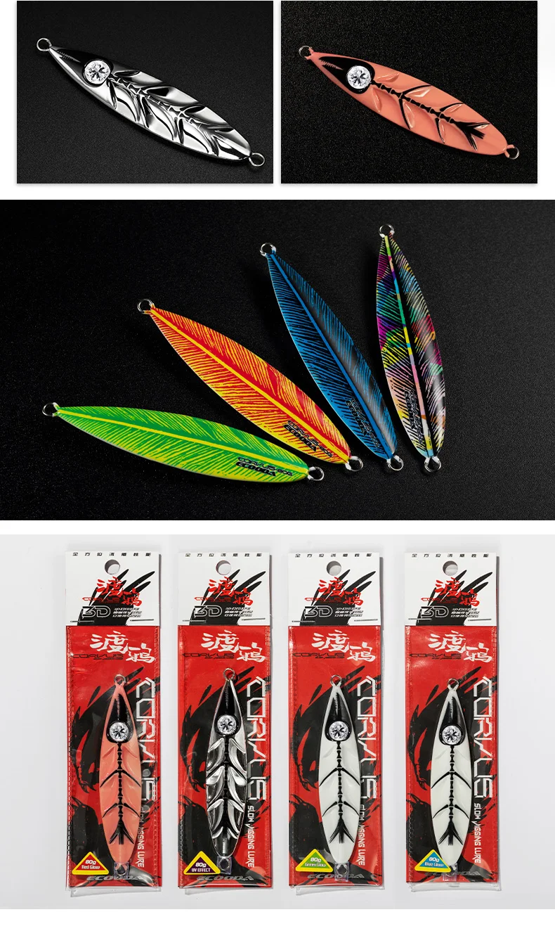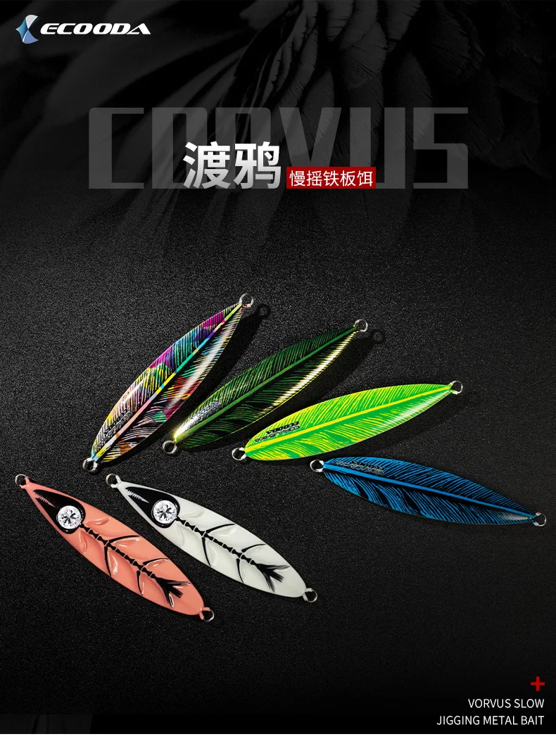 ECOODA-señuelo de pesca luminoso CORVUS, cebo de Metal para Jigging lento, 80/120/150/200/260g, señuelo de pesca en aguas profundas, Jigs de caída lenta