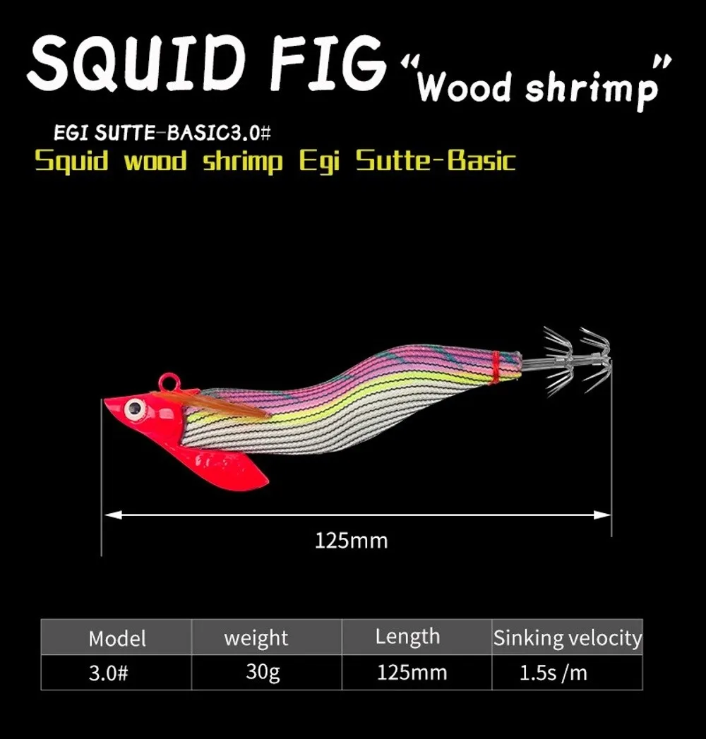 Egi 3.0# hook 30g Sycamore Wooden Squid Bait Artificial Jigging Lures Slow Sinking Squid Hooks Sea Fishing Octopus Cuttlefish Tackle Lure