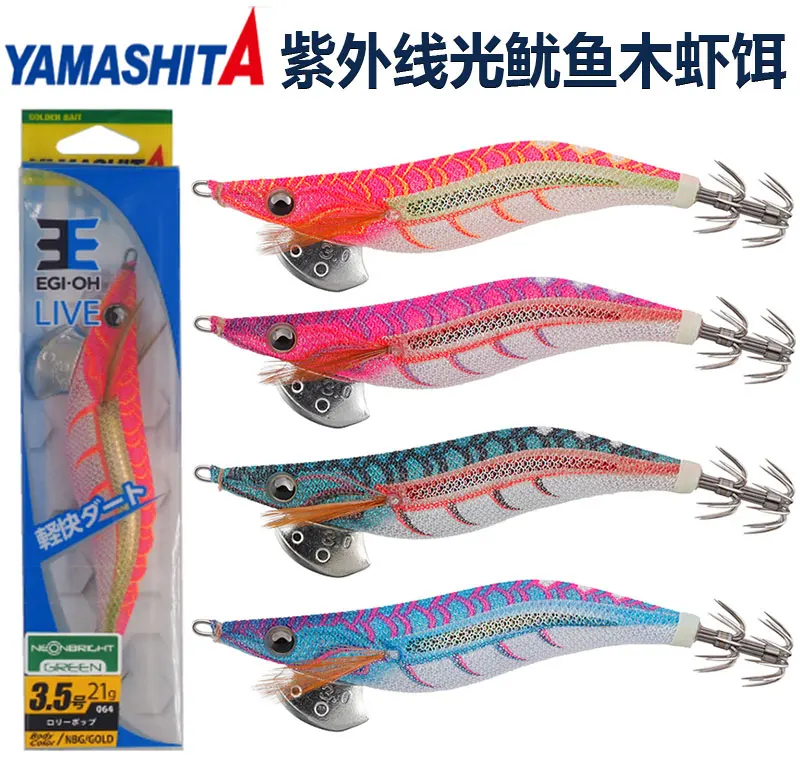 EGI-OH de camarón de madera YAMASHITA de Japón, anzuelo de calamar reflectante con luz UV viva, sepia, cebo falso