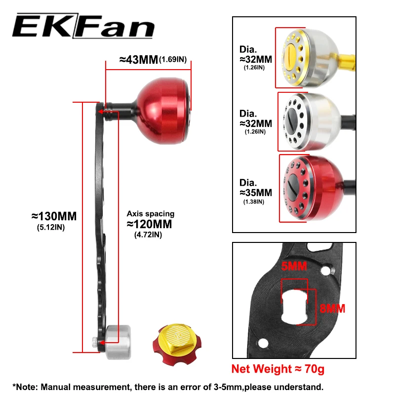 EKFan 130MM Alloy S Type 8x5MM Holes For Fishing Bast Casting Reel Wheel Handles DIY Parts Accessory