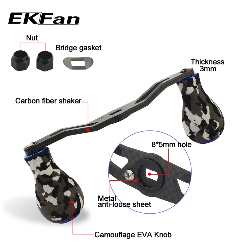 EKFan 115mm 8*5mm agujero fibra de carbono carrete de pesca mango cebo fundición camuflaje EVA perilla accesorios de pesca