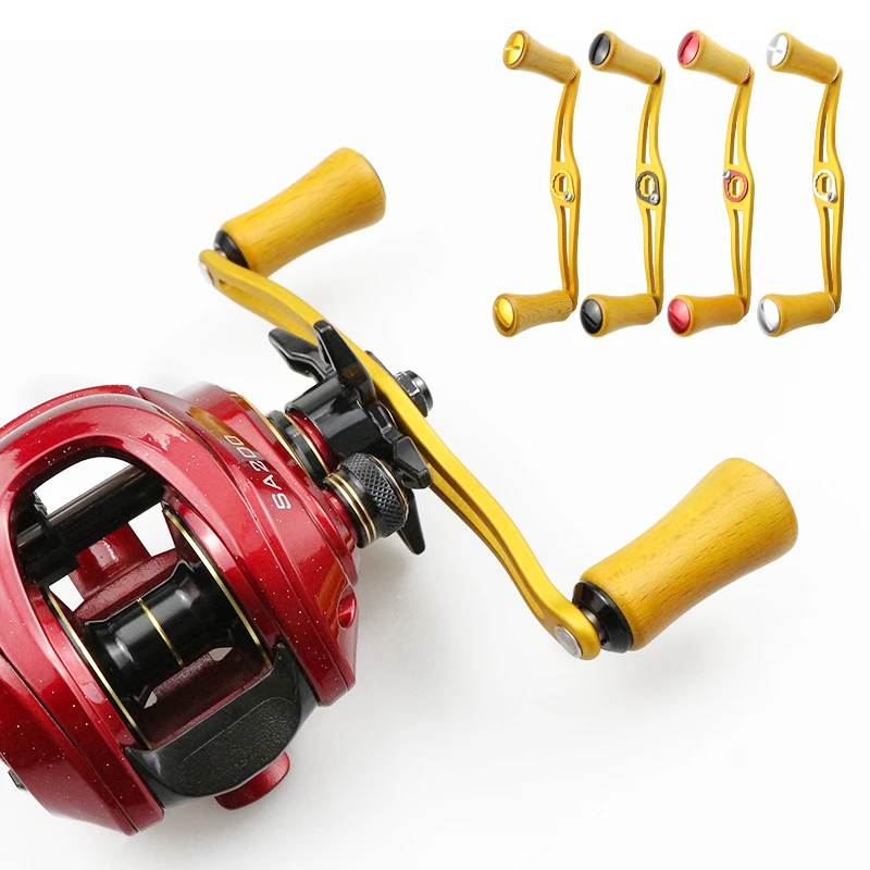 Ekfan-mango de aleación de 130MM + perilla de madera para carrete de pesca Dawa Bastcast, asas de 8x5MM, agujeros DIY