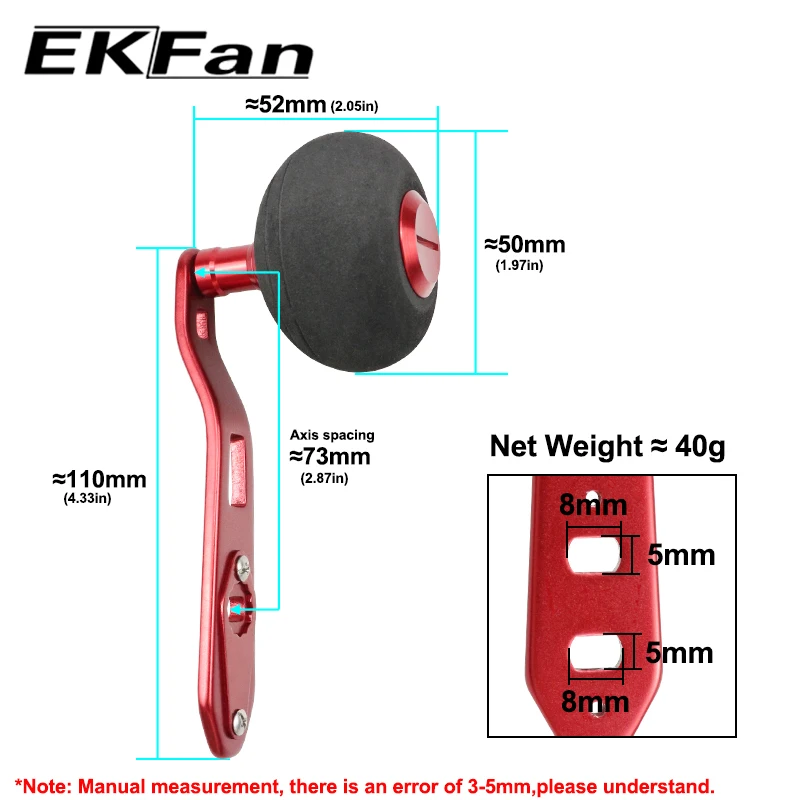 Ekfan-mango de aleación de aluminio de estilo nuevo, perillas de EVA de 50MM para carrete de Baitcast Dawa, agujeros de 8MM x 5MM, 110MM