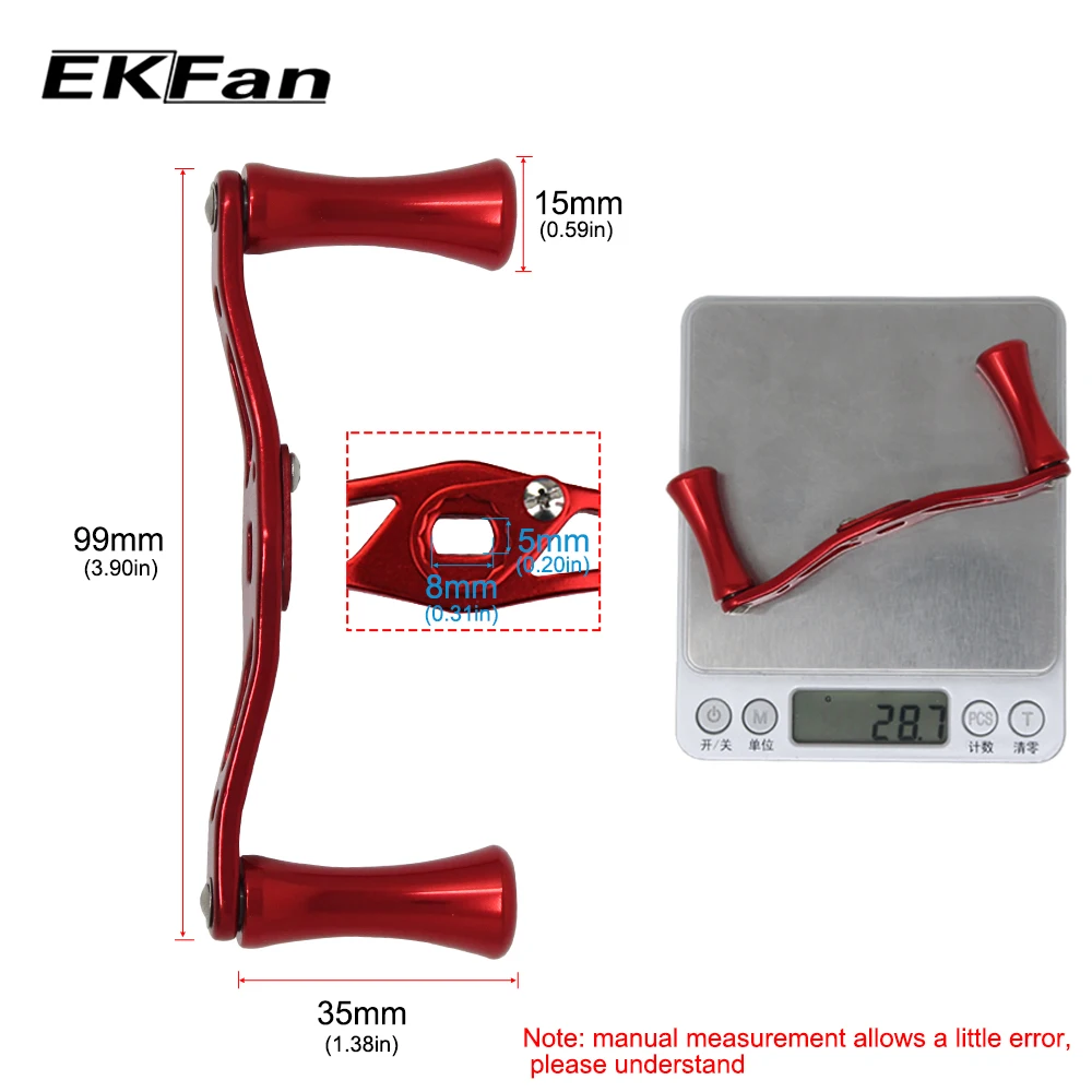 Carrete de pesca de gota de agua EKFan tamaño del orificio del mango 8*5mm mango de carrete de pesca de aleación de aluminio para carrete de pesca de Baitcasting