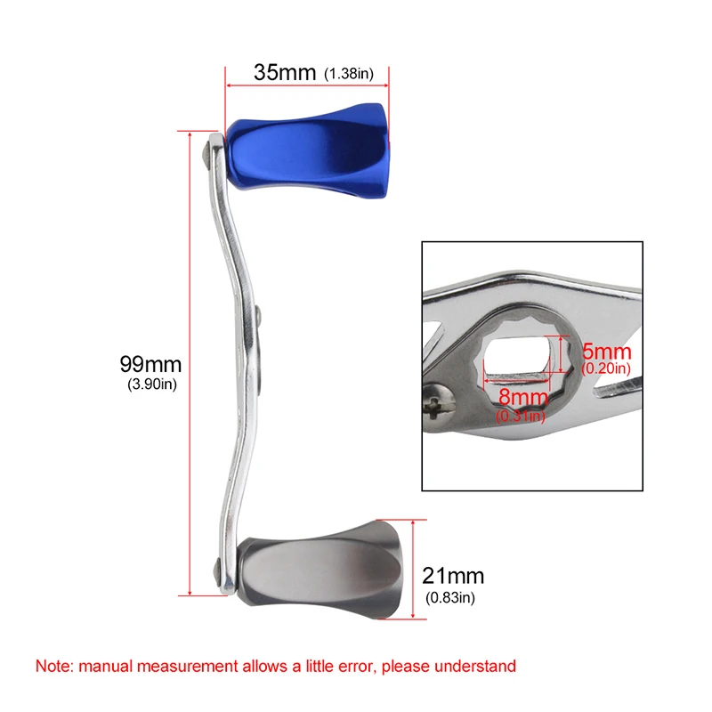 EKFan-carrete de pesca de diseño mixto, mango de 8x5MM, tamaño del agujero, longitud 99mm, para fundición de cebo, gota de agua y piezas de rueda de tambor