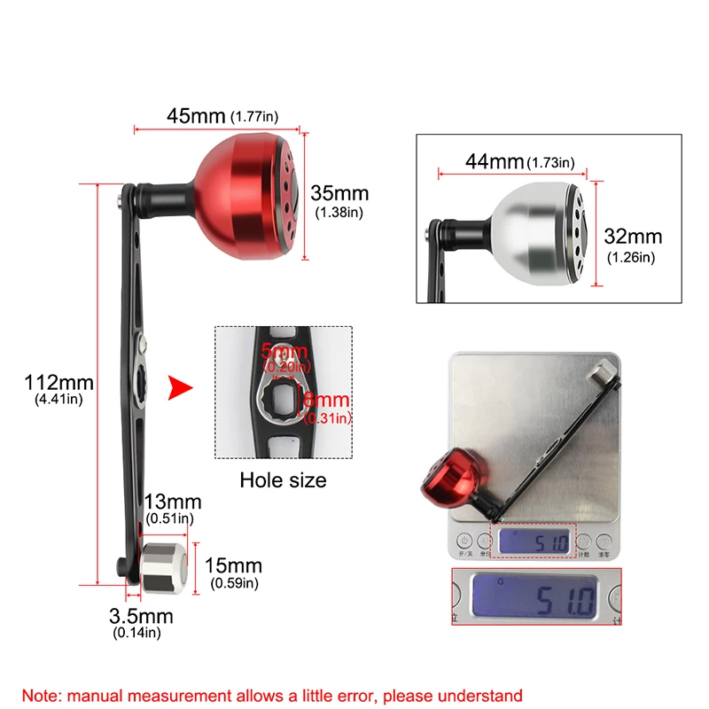 EKfan CNC aleación de aluminio 112MM mango de carrete de pesca y perilla para SHI y DAI Baitcasting Tackle accesorio