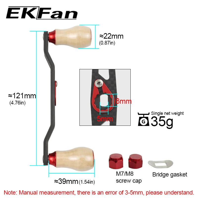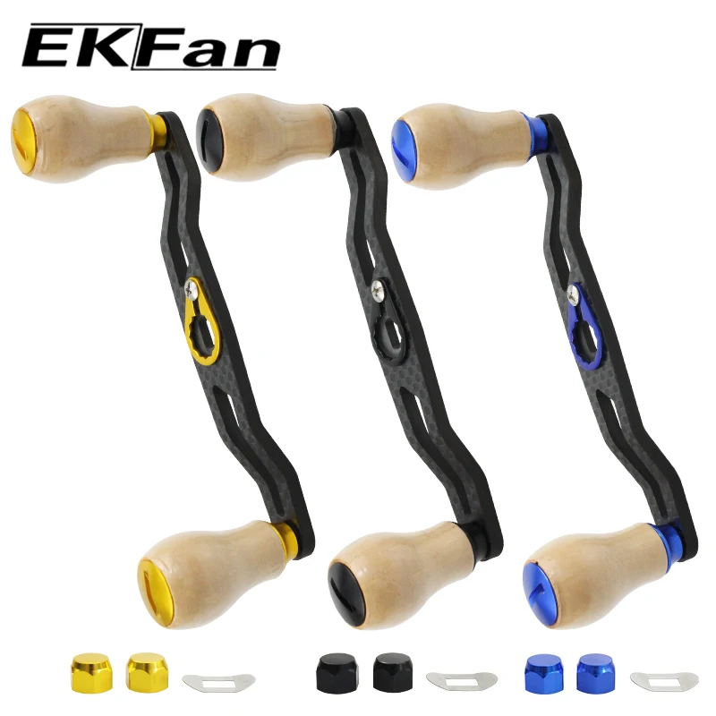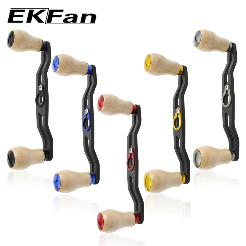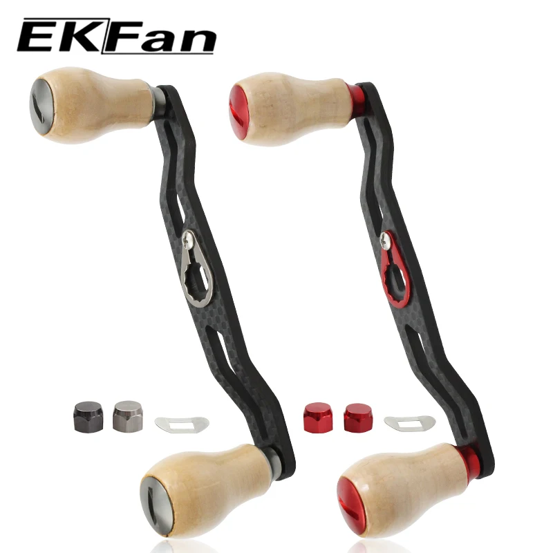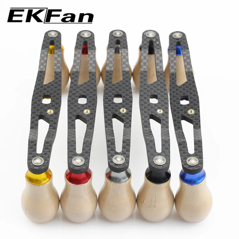 EKfan, nuevo modelo, mango de carrete de pesca de fibra de carbono de 120MM, perilla de madera adecuada para carrete de pesca de Baitcasting SHI y DAI