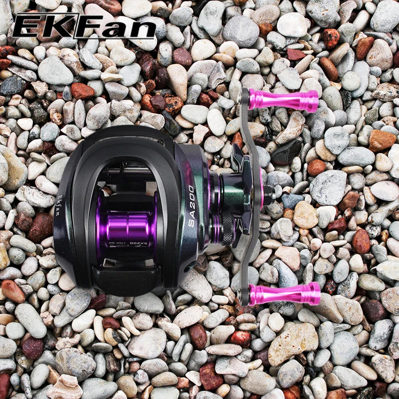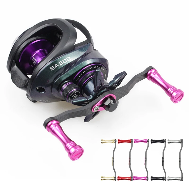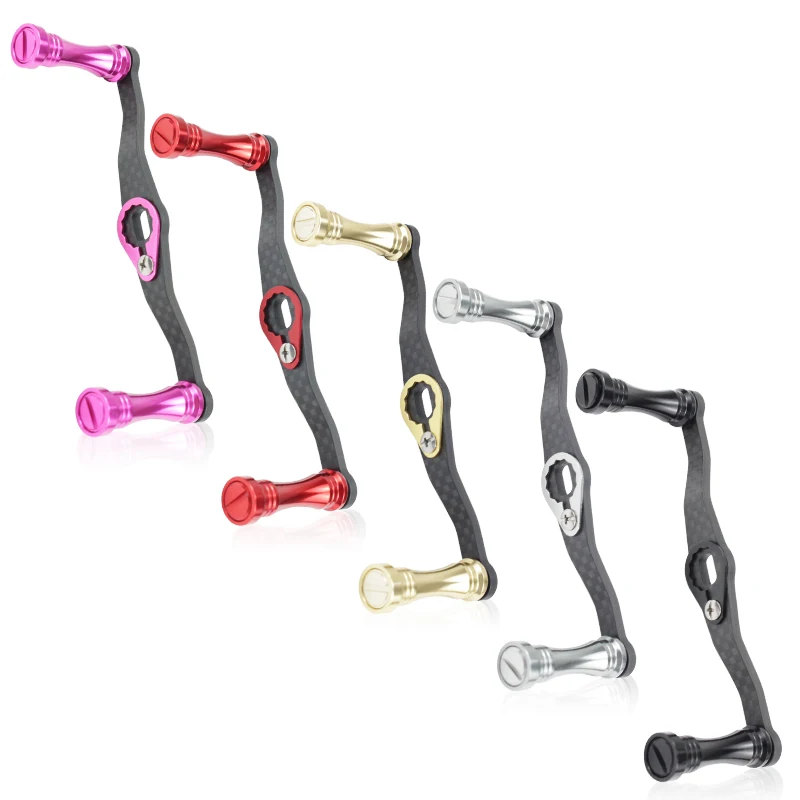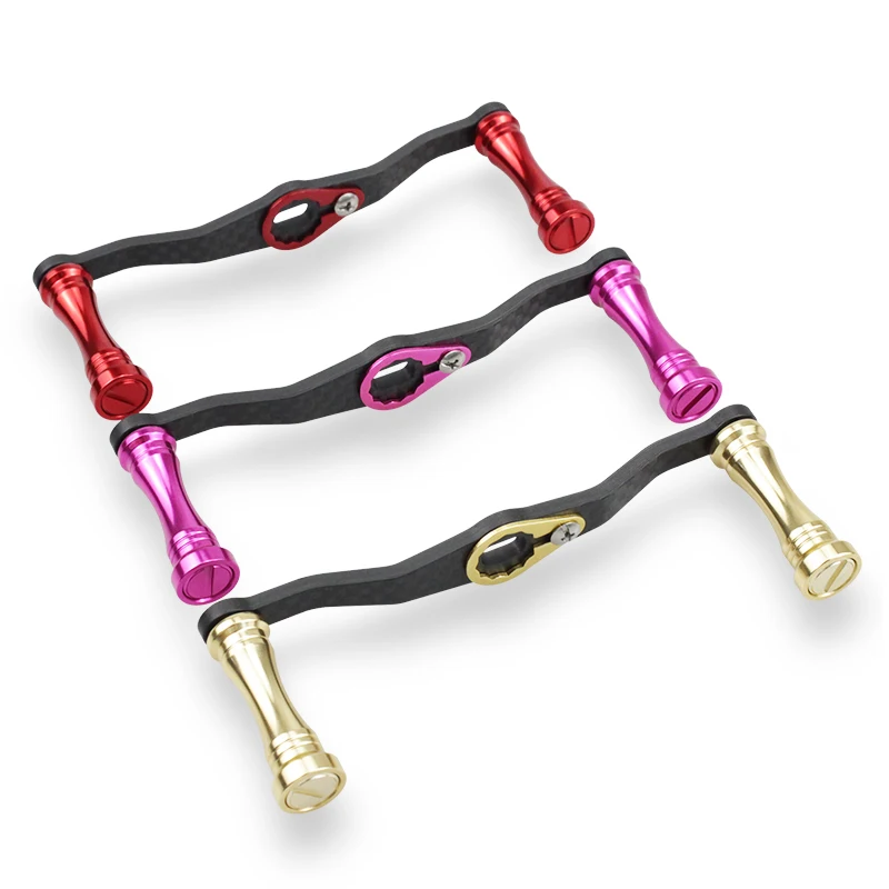 Perillas de aleación de aluminio EKfan, carrete Baitcasting, accesorio de pesca DAI & SHI de mango de carrete de pesca de fibra de carbono de 105MM
