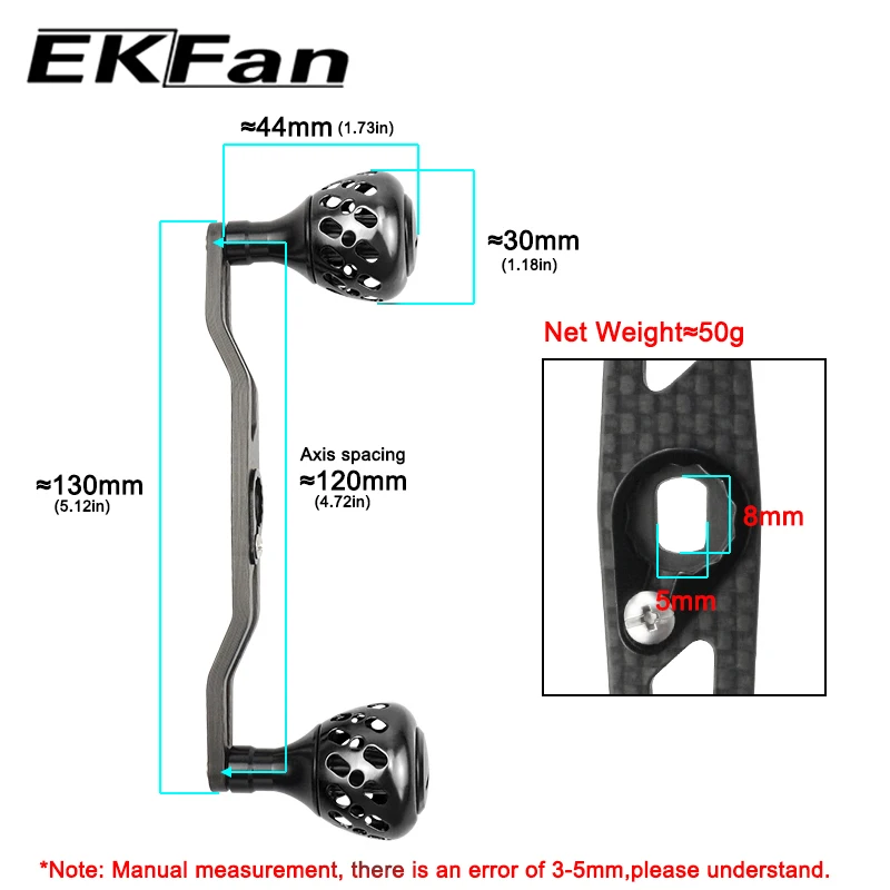 EKFan promoción ventas 130MM mangos de carbono 50G 8x5MM agujeros para pesca carrete de fundición DIY
