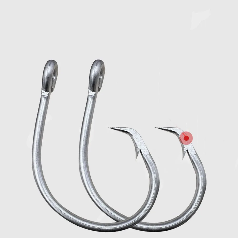 5 uds. El anzuelo de boquilla de acero inoxidable 5/0-10/0 es adecuado para anzuelos con forma de pesca en agua de mar, anzuelos grandes para atún y anzuelos de tiburón