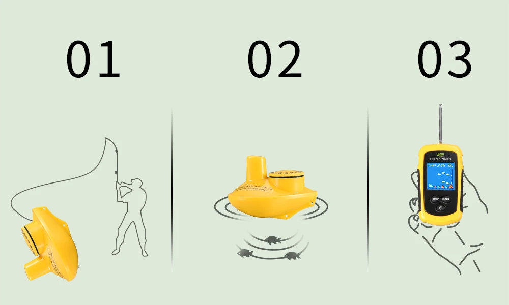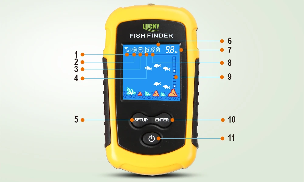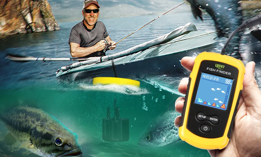Muestra la profundidad del agua, la localización de los peces y el fondo de hierba o roca