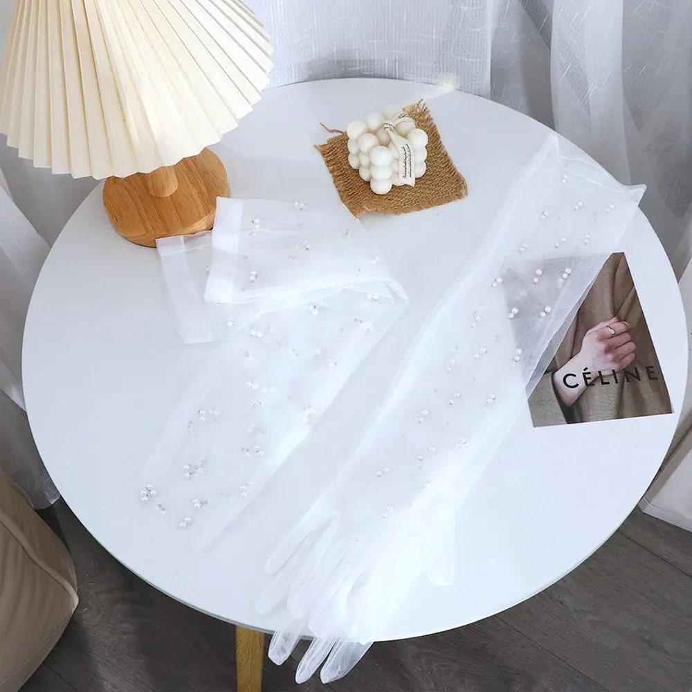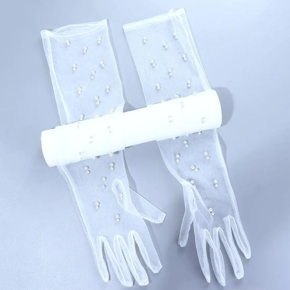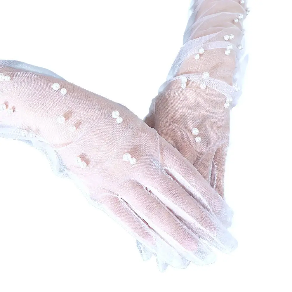 Material: Lace color: White Style: full finger, fingerless Size: one size Gender: Female Packing: 1 pair of gloves
