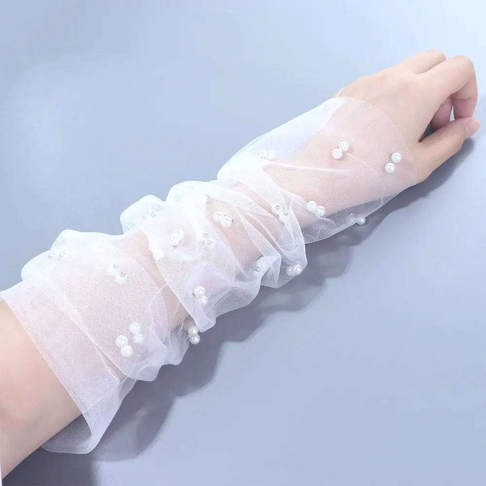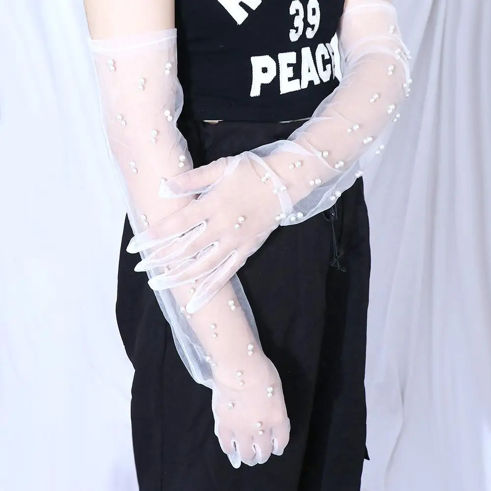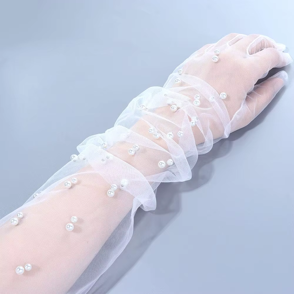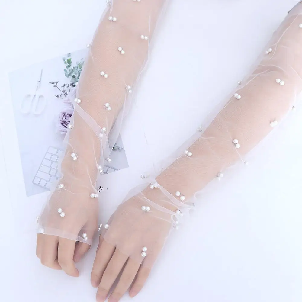 Material: Lace color: White Style: full finger, fingerless Size: one size Gender: Female Packing: 1 pair of gloves