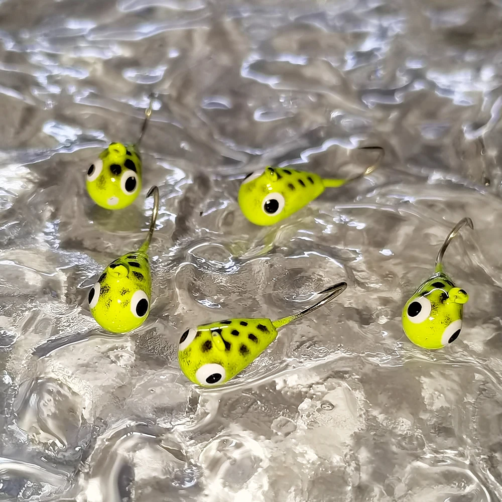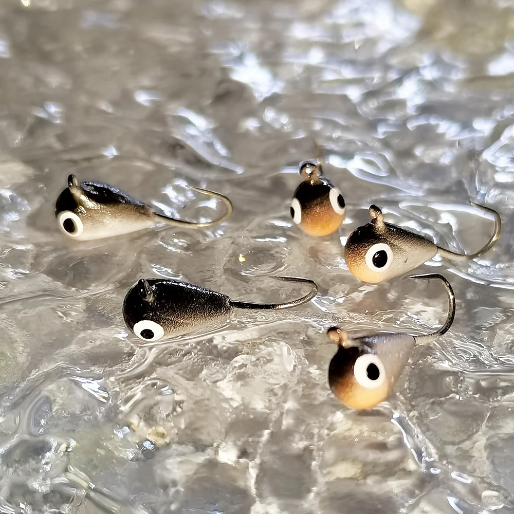 Gran plantilla de invierno, plantilla de agua fría.Golpee esto con un gusano de cera o una punta y estará listo para pescar.También se pueden utilizar tiras finas de señuelo de plástico en estos plantillas livianas que vibran.Las plantillas en forma de lágrima son para cebos más pequeños: bluegill, perca, tipo de pez, trucha y muchas otras especies.