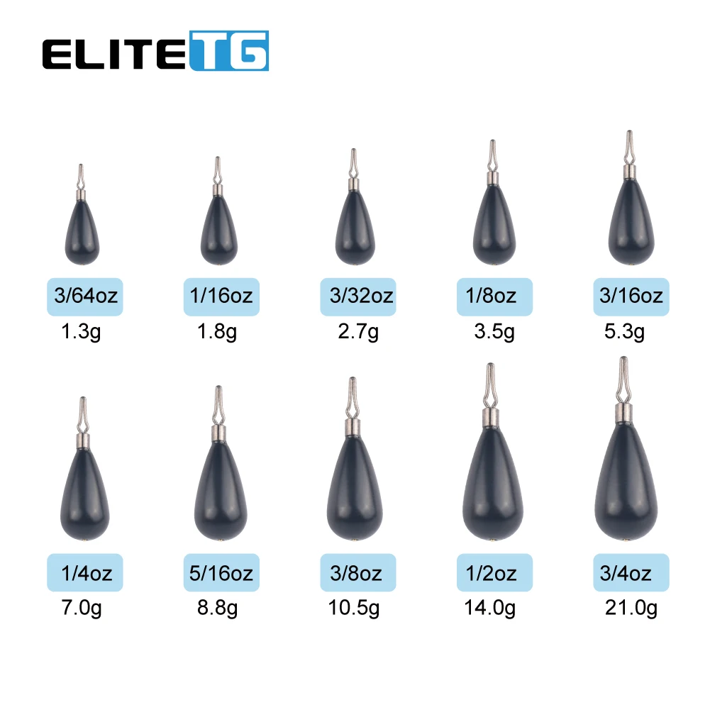 Elite-plomos de tungsteno TG 10 piezas, señuelo de pesca sin plomo, 21g-1,3, trucha y pez Panfish, accesorios de color negro mate