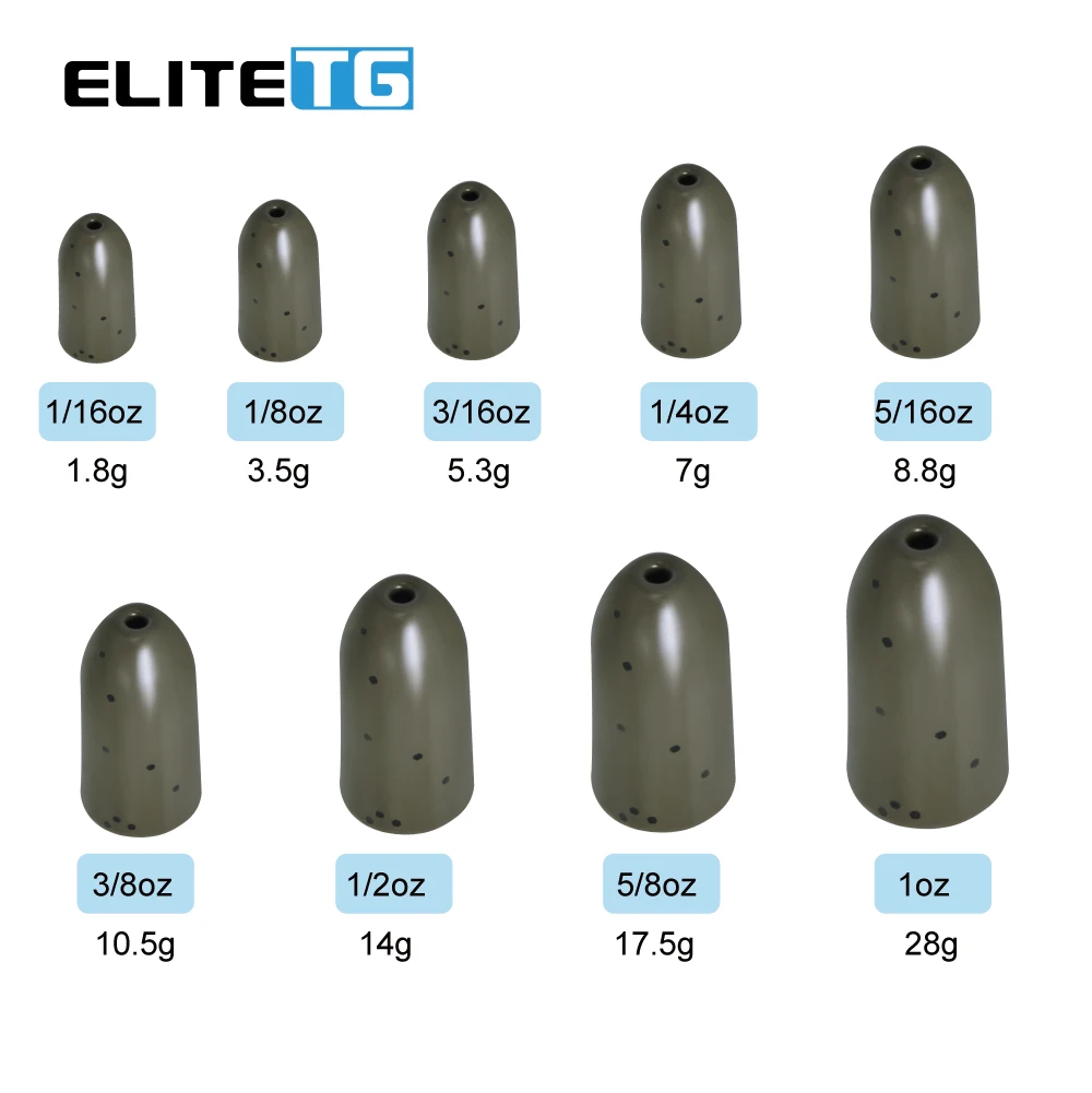 Elite TG 10 Uds pesas de gusano de tungsteno 1,8g-28g Bullet Bass Texas/Carolina Rig trucha Panfish perca señuelo accesorios de pesca