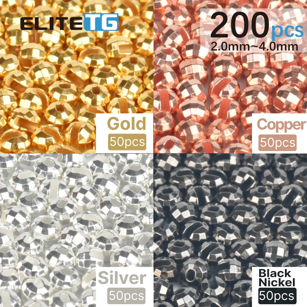 Elite TG 2,0-4,0mm cuentas facetadas de tungsteno 200 en atado de moscas Total, Material de pesca trucha Bluegill perca pesca con mosca multicolor