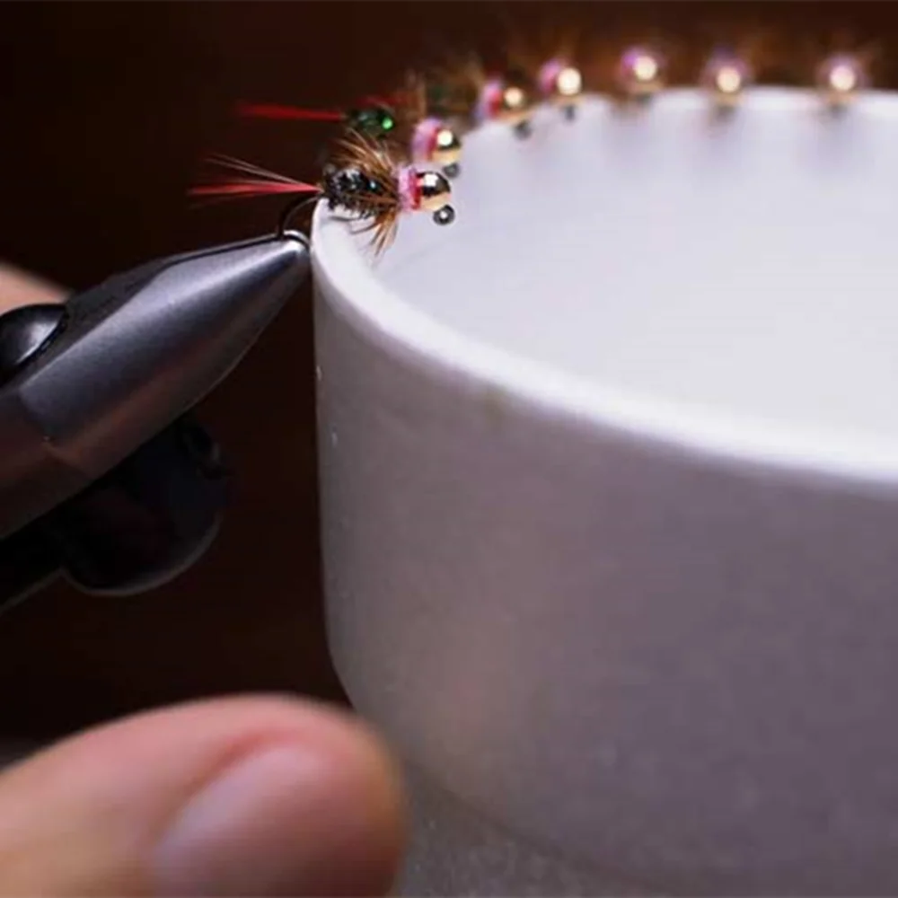 Superficie brillante y suave y agujero para atar moscas perfectas.