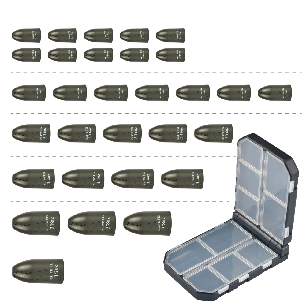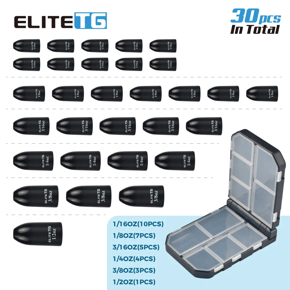 Elite TG 30 Juego de pesas de tungsteno Combo peso de plomo de gusano, 1/16 ~ 1/2oz Bass Wrasse Bluegill Texas/Carolina Rig señuelo de pesca Tackel