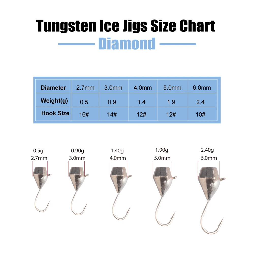 Elite TG 5 uds plantilla de pesca en hielo facetada anzuelo Hayabusa, anzuelo de tungsteno de diamante 2,7mm ~ 6mm perca Bluegill Crappie señuelos
