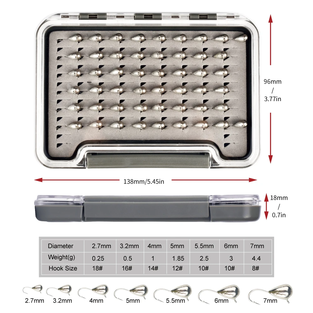 Elite TG 50 Uds. Juego de cabezales de plantilla de pesca en hielo con forma de lágrima de tungsteno 2,7mm-7mm, perca de hielo de invierno Bluegill Bream Softlure Hayabusa gancho