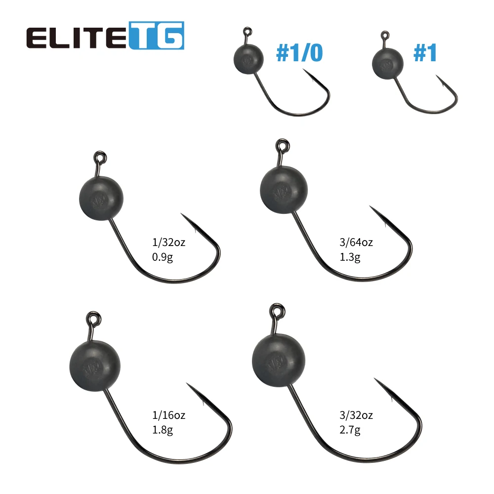 Las cabezales de jig de tungsteno de 97% de alta calidad de Elite TG vienen con un revestimiento molecular duradero, lo que da como resultado un color de óxido negro mate que no se astilla como los pesos pintados de otras marcas.