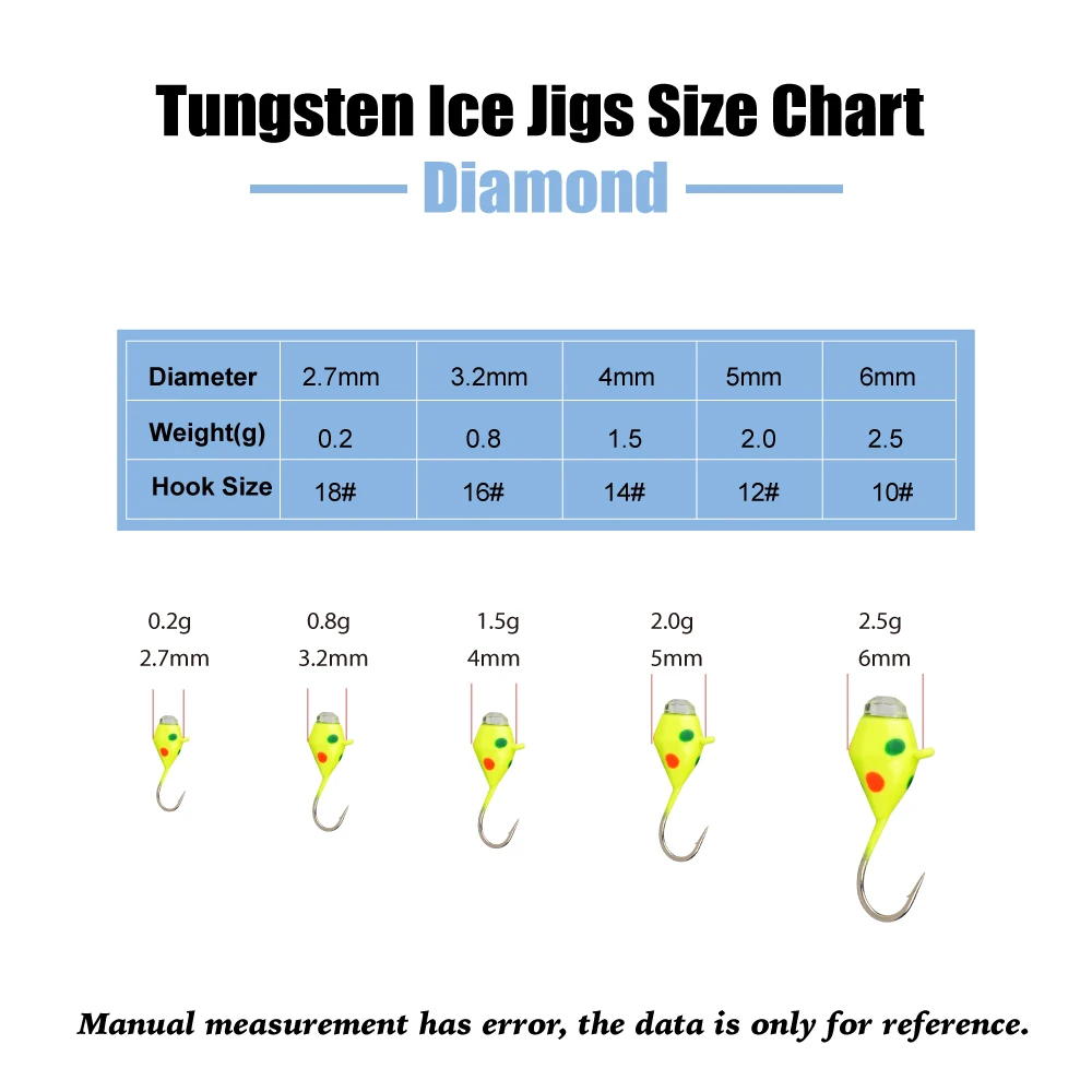 ¡El anzuelo japonés ultraafilado le brindará un poder de enganche óptimo! Esta es una plantilla de tungsteno de cabeza pesada. Ideal para percas de aguas profundas y panfish durante todo el año. ¡La plantilla de hielo de tungsteno alegrará tu día en el hielo y en aguas abiertas!
