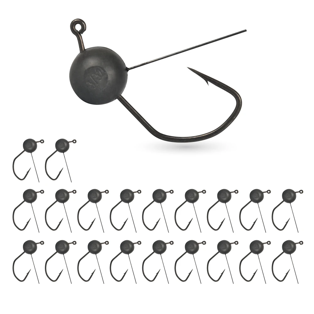 Las jighead de bola sin malezas son una pieza de aparejo terminal de pesca extremadamente versátil. Equiparlos con un remolque de crawura o criatura y pescar como un aparejo de texto o una plantilla de giro. Apórtelos a un pececillo o remolque de remos de pala y a los peces como plantilla de natación.