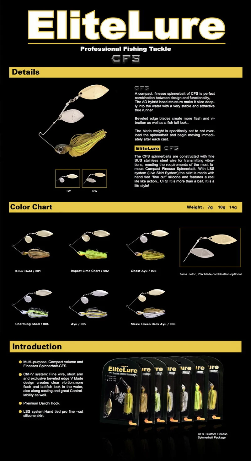 EliteLure-Cebo giratorio con faldón para pesca, aparejos de pesca de 10g/14g, CF-S, Wobblers, Spinnerbait, Buzzbait, lubina, trucha, perca, Lucio