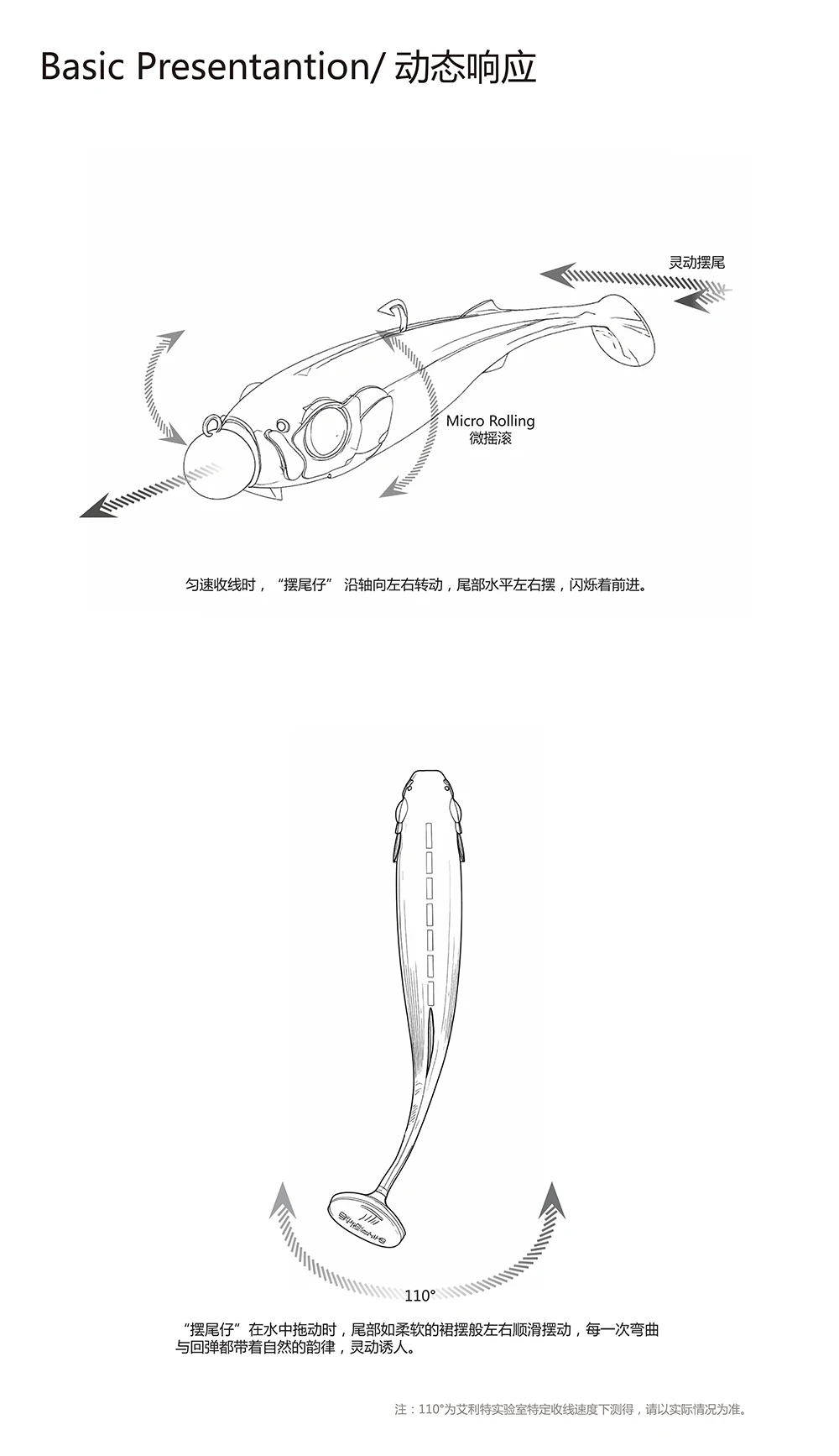 La cola ultrafina es más suave e incluso cuando se arrastra lentamente, la amplitud del balanceo de la cola puede alcanzar las 110 °