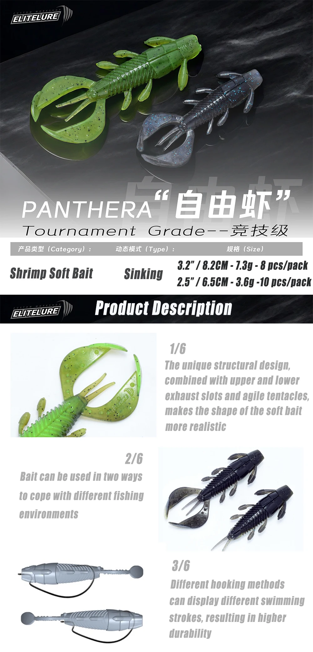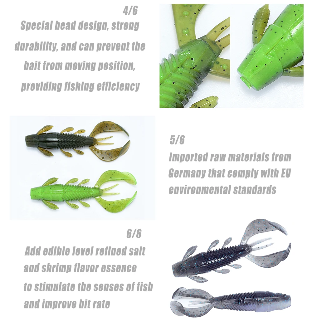 1/6 El diseño estructural único, combinado con ranuras de escape superiores e inferiores y tentáculos ágiles, hace que la forma del cebo blando sea más realista.