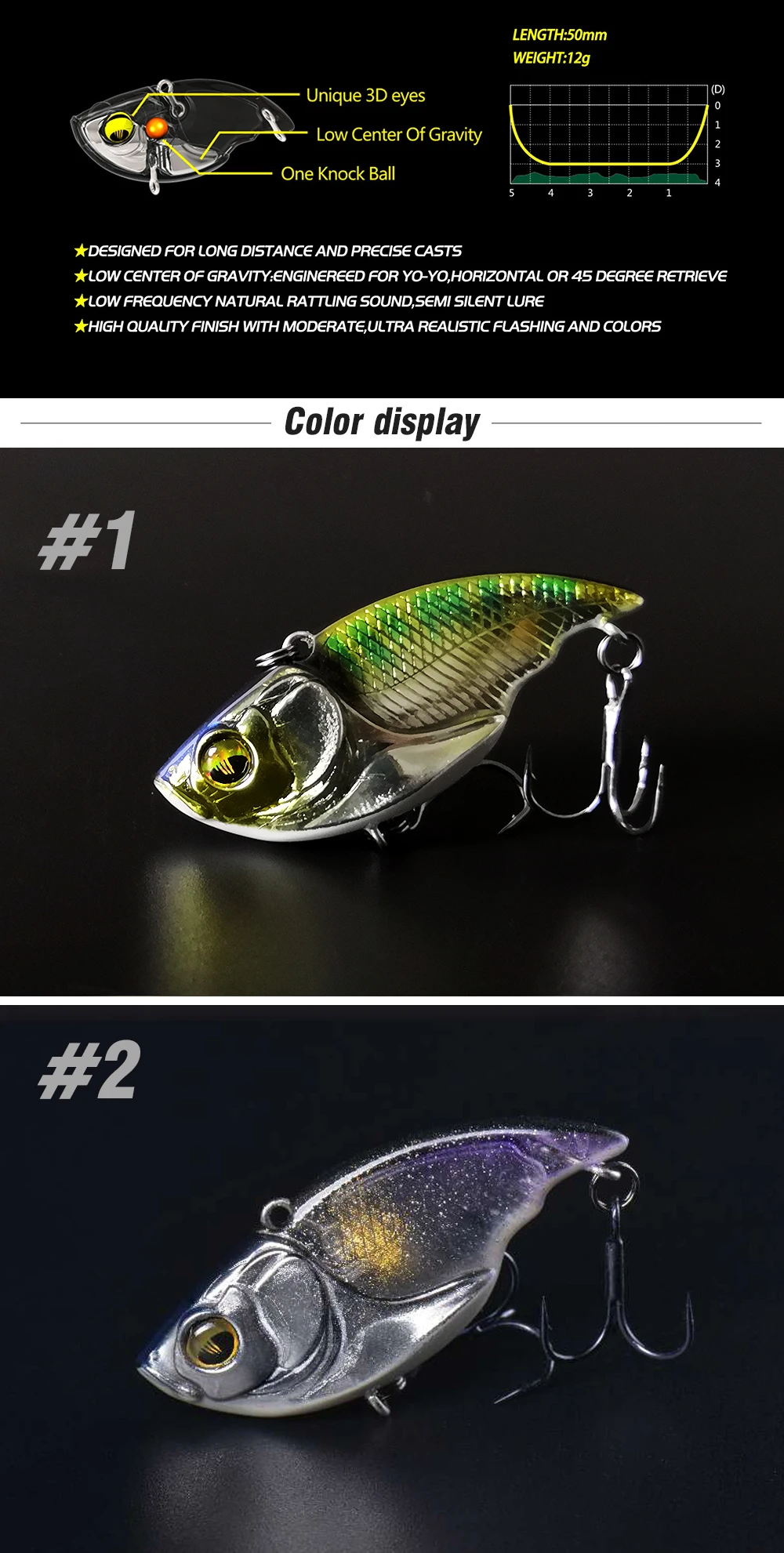 ELITELURE V5 12g Plastic Lipless Sinking Crankbait VIB Lures Fishing Wobblers Vibration Baits Tackle For Bass Trount Fishing