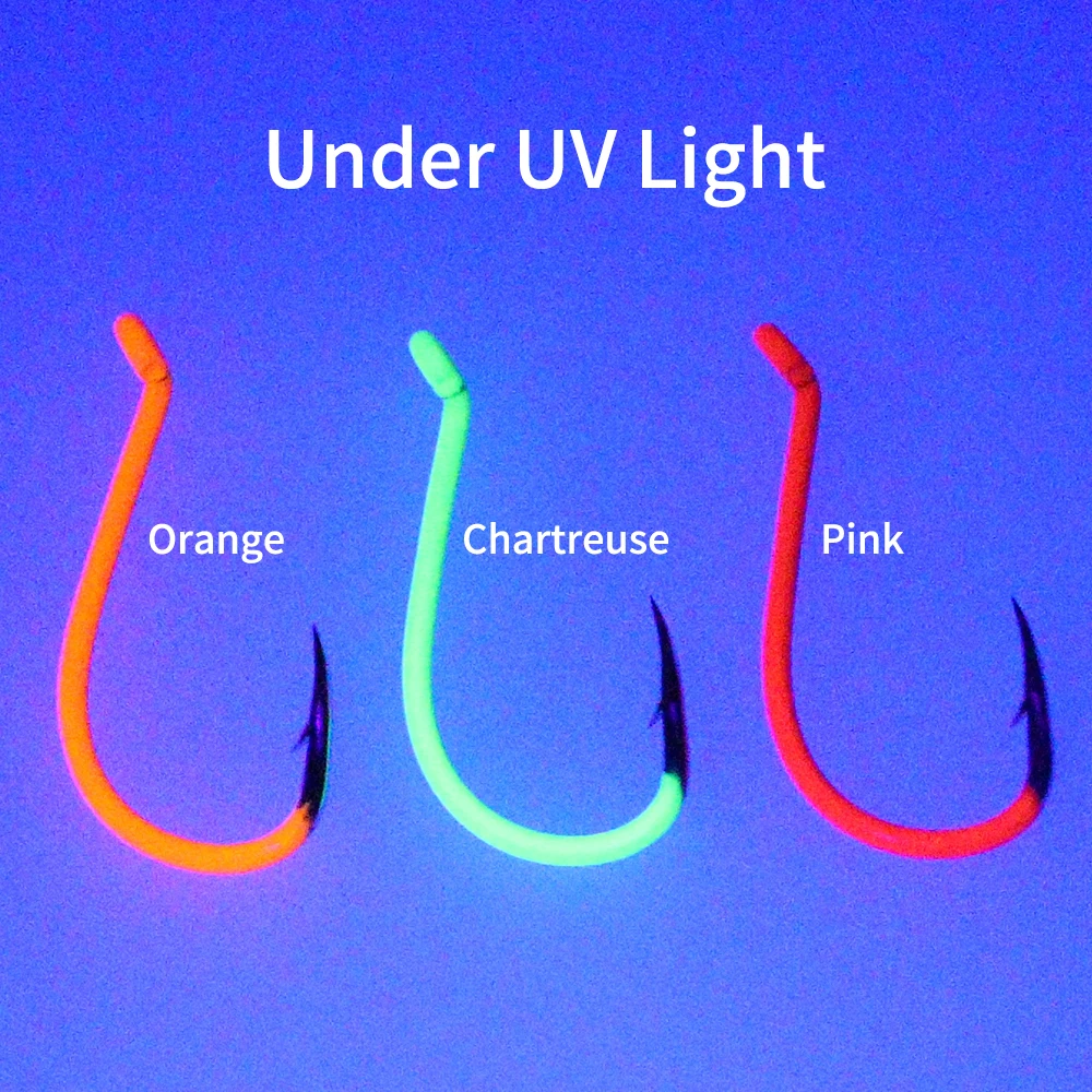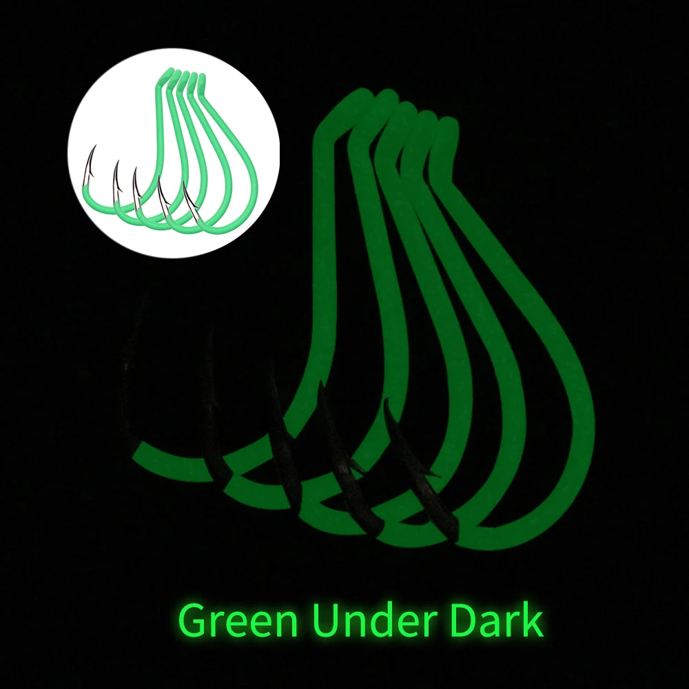 Elllv#10 - 10/0 luminoso pico de pulpo acero rico en carbono UV Fluo anzuelo desplazado agua salada cebo de pesca gancho negro verde naranja rojo