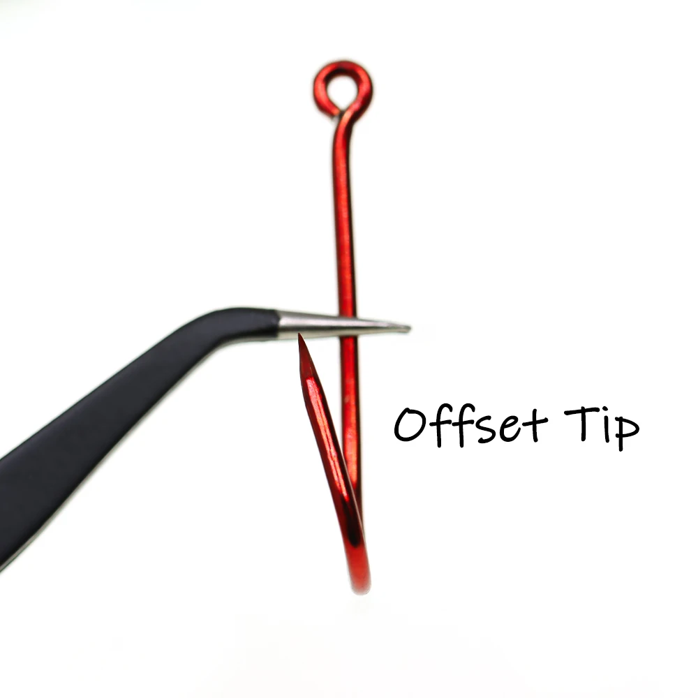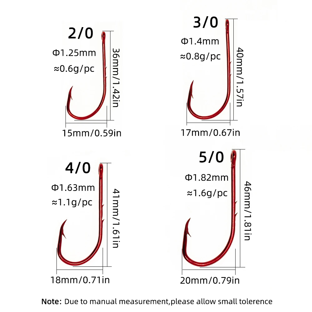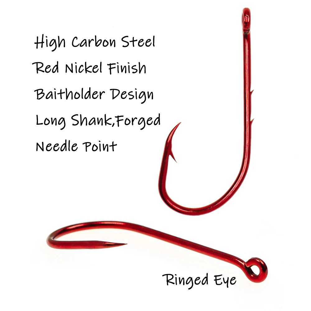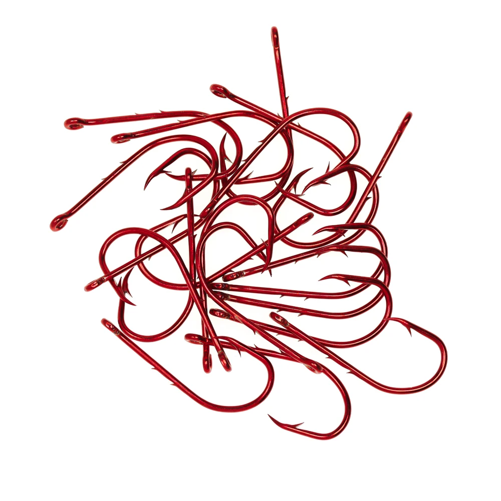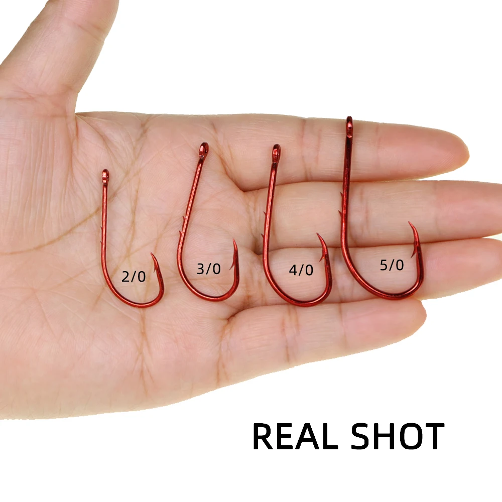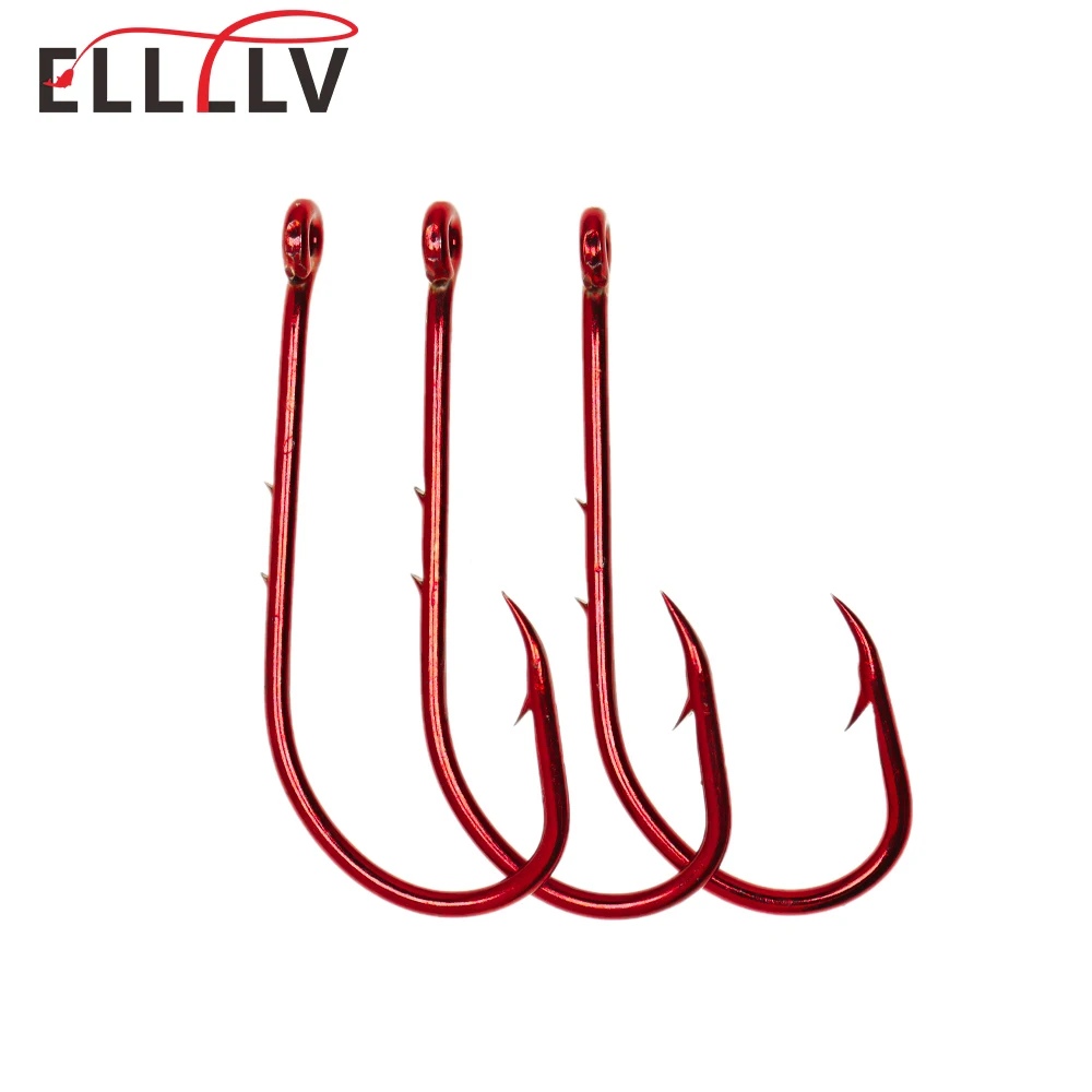 Ellllv 20 Uds 2/0 ~ 5/0 anzuelo de pesca con soporte de cebo rojo vástago largo Offset anzuelo de cebo vivo estrecho 2 cañas aparejos de pesca de lubina