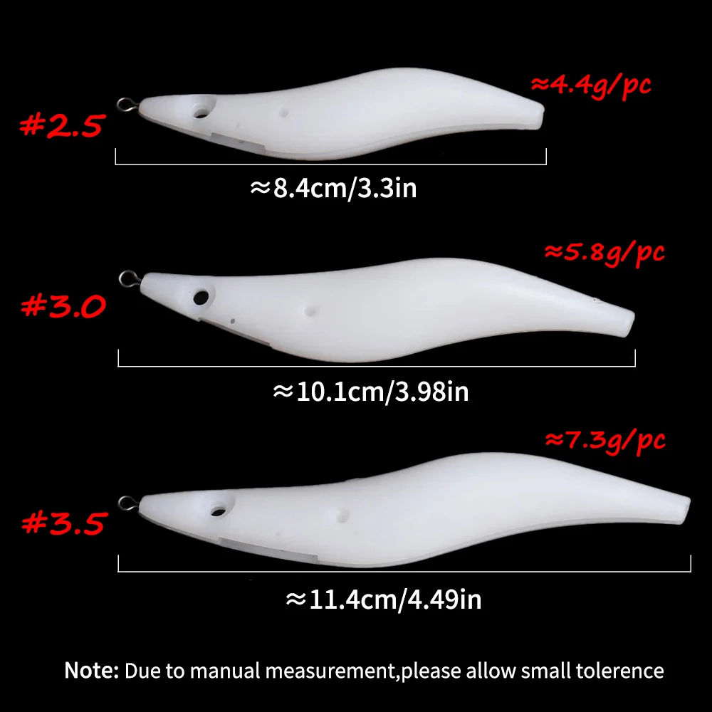 Ellllv 20PCS 3.5# 3.0# 2.5# Squid Jig White Blanks Saltwater Fishing Squid Lure Wood Shrimp Body DIY Accessories