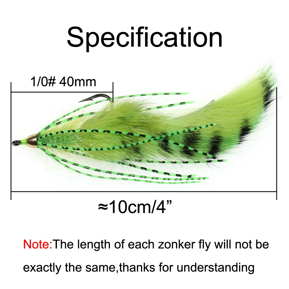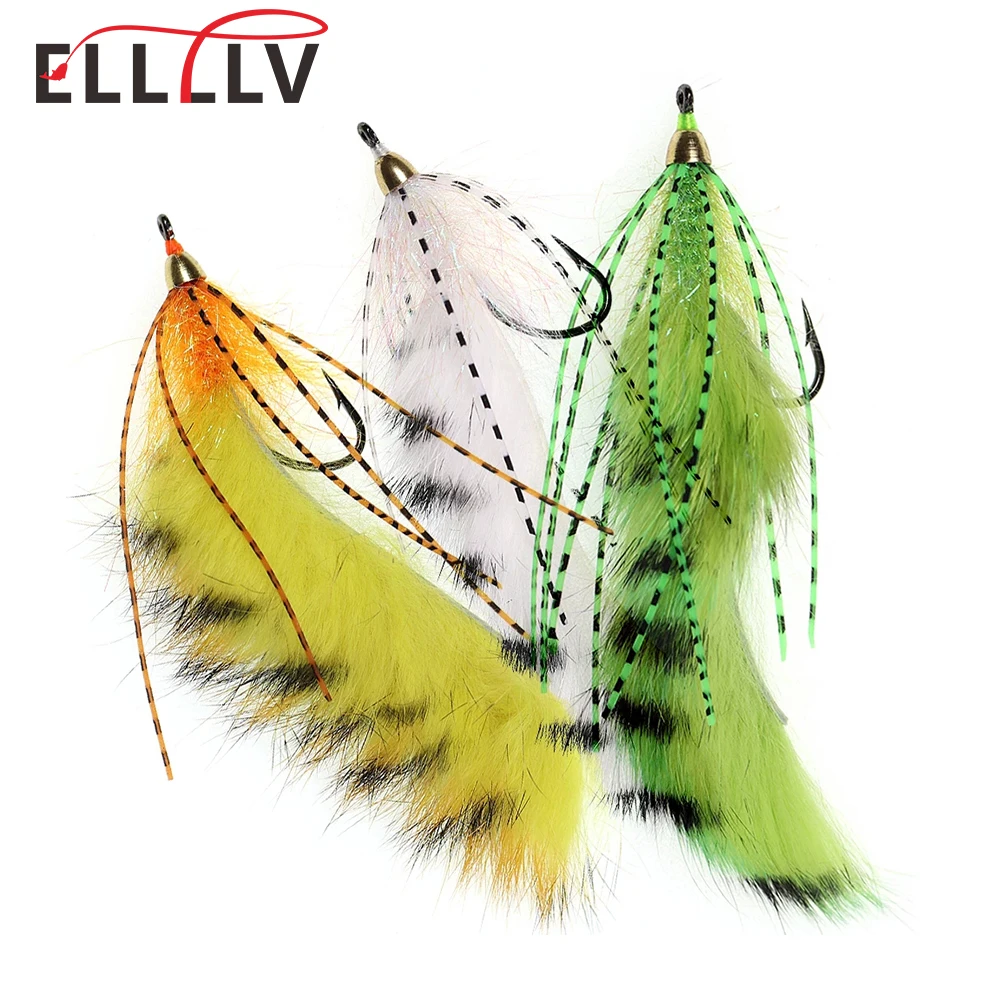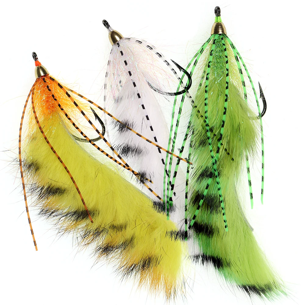 3 piezas#Señuelo de pesca de salmón, Lucio, lubina, mar, 1/0, cabezal de cono de latón, serpentín Zonker, variación de moscas, naranja, blanco y amarillo