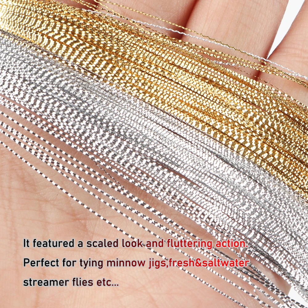 Nuestro duradero Flashabou engarzado para un aspecto a escala y acción de aleteo. Perfecto para atar jigs de pececillos, moscas de serpentina de agua dulce y salada, etc.