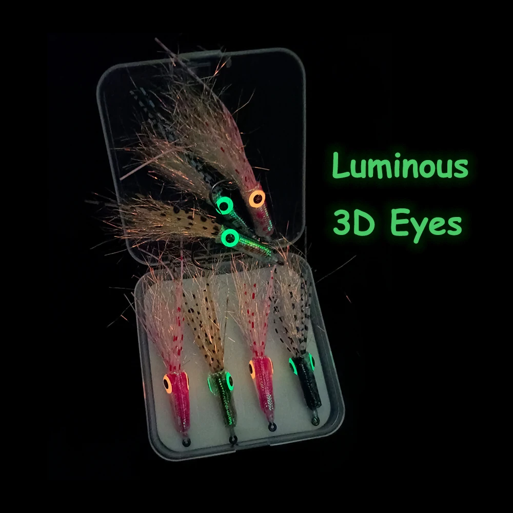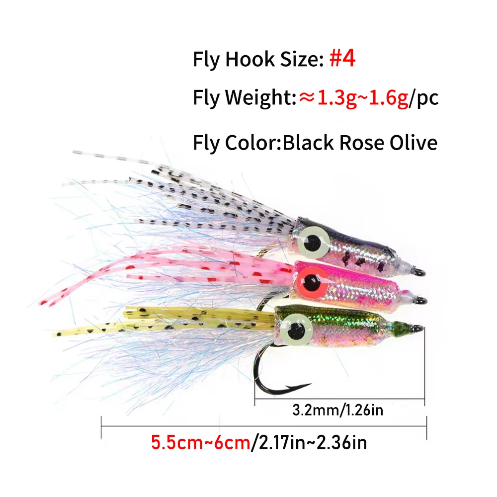 Ellllv 4 unids/caja#4 Mini calamar moscas Artificial agua salada señuelo para lubina búsqueda mar trucha Tarpon pesca oliva rosa negra