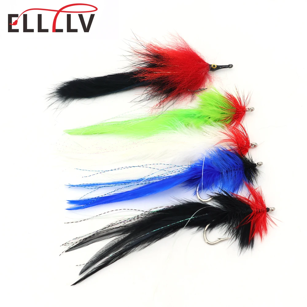 Ellllv 5,9′′ 3/0# Gancho de boca larga, señuelo serpentín de cola de conejito 5/0# Seaducer de anzuelo, pesca en agua salada, pez cebo para pez rojo, Tarpon