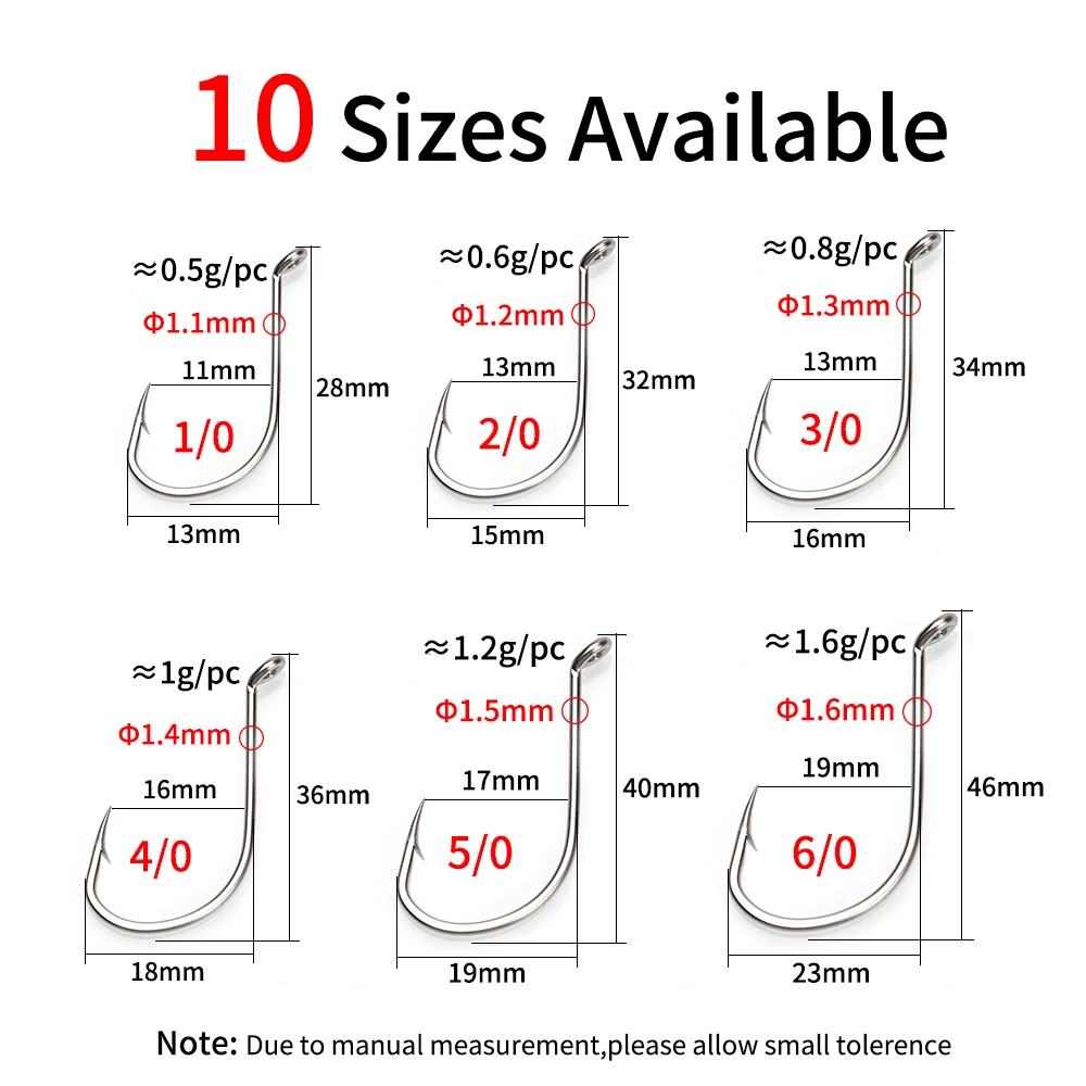 Tamaño 1/0, 2/0, 3/0: 12 piezas/bolsa;