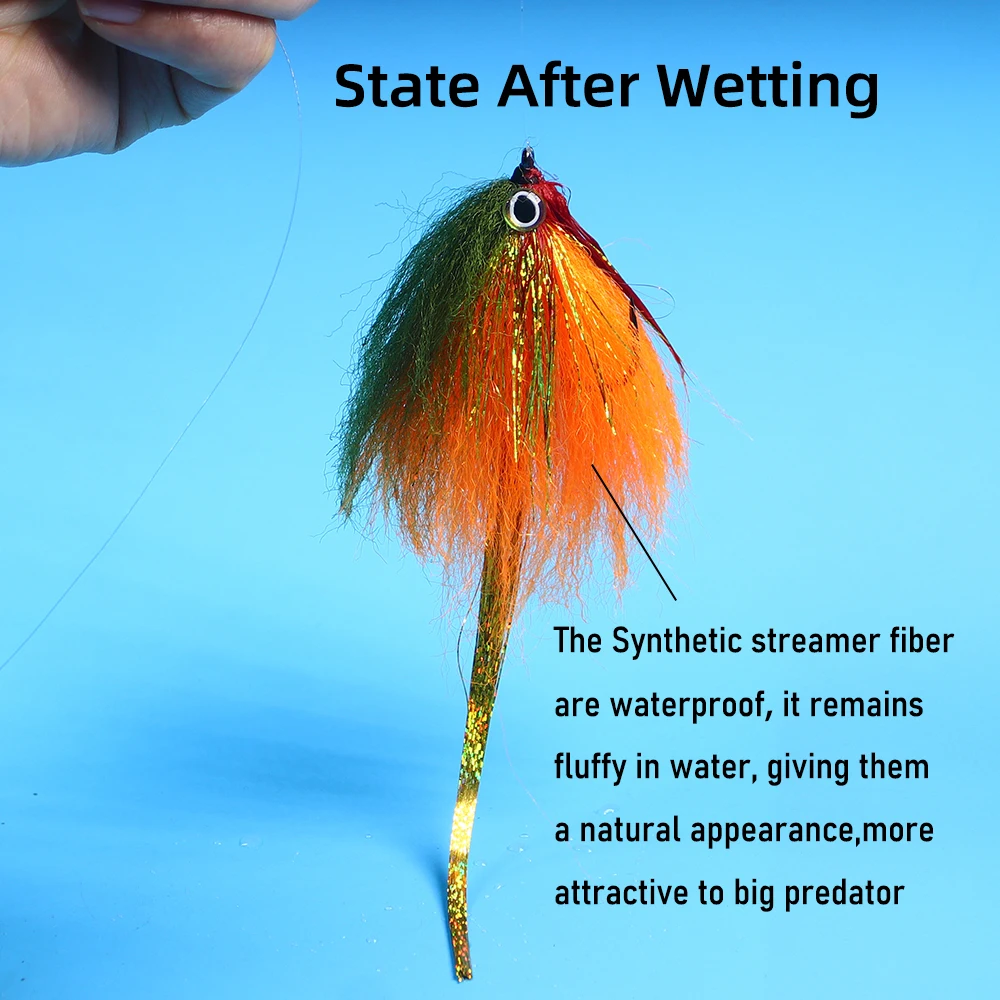 El nuevo desarrollo Big Streamer Fly presenta un par de ojos realistas en 3D y una buena combinación de mosca flash streamer, hackle marrón griziano y 2 plumas de hackle de sillín de colores sólidos brillantes: una excelente apariencia para imitar peces cebo, minnow y haya.Las moscas están atadas por tyers experimentados. Esta es una de las moscas más populares para capturar truchas, lucios, tiras, steelhead, tarpon y otras especies de agua salada, etc.Disponible en tallas 2/0 y 4 colores.