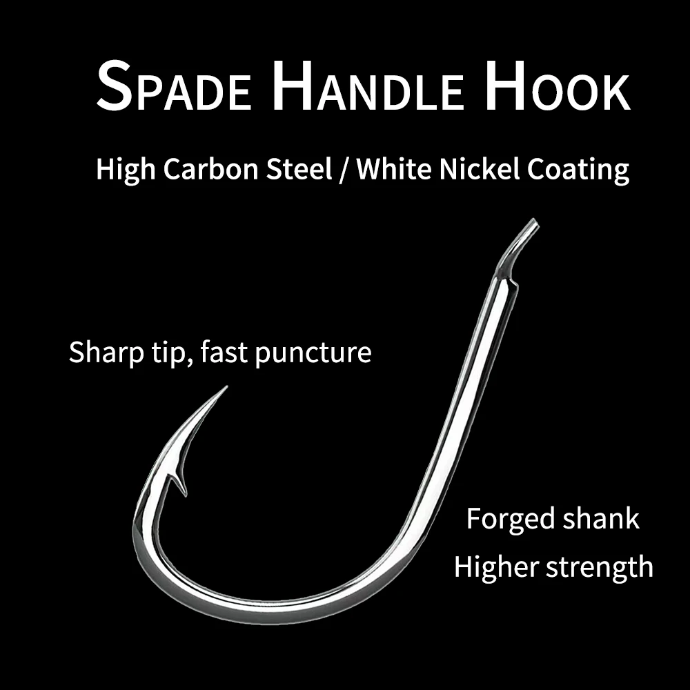 -6 ganchos de acero con alto contenido de carbono, níquel blanco, vástago forjado, Punta ultra afilada, punción rápida.