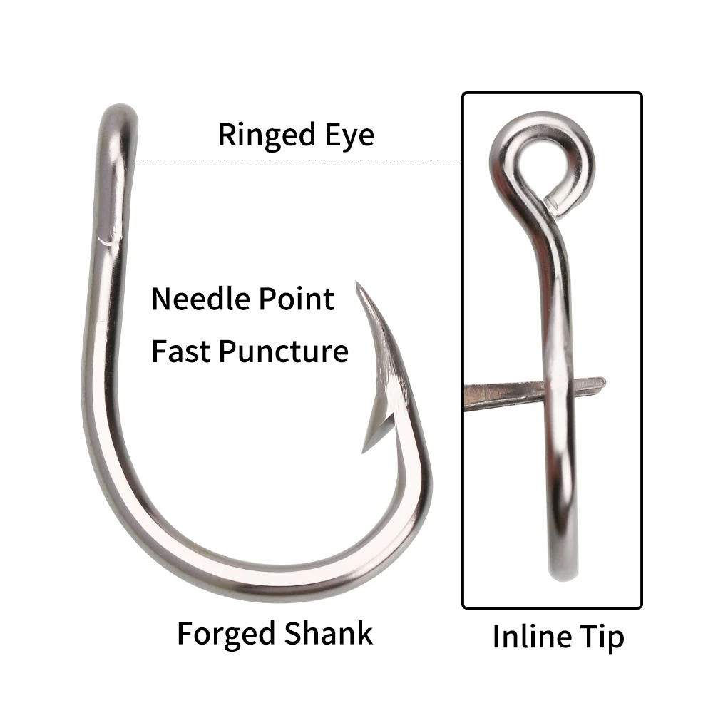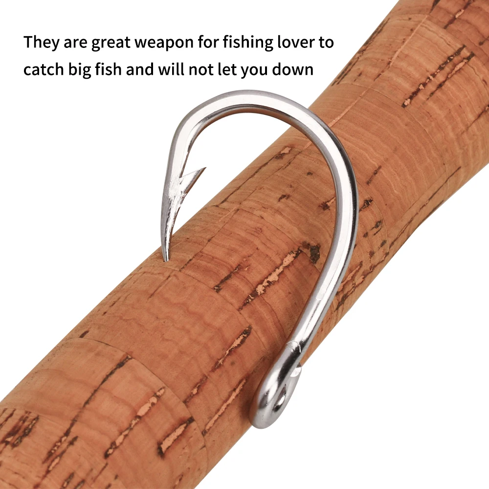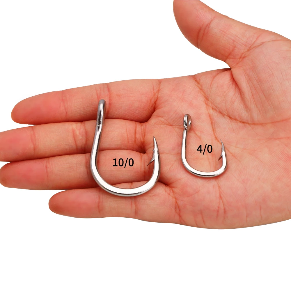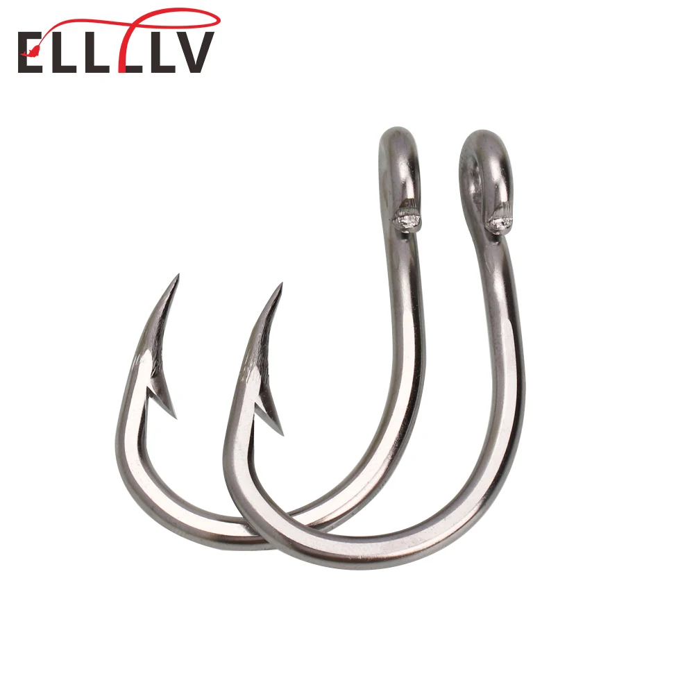 Ellllv-Anzuelos de pesca de acero inoxidable, anzuelo de gran tamaño, 100, 4/0, 5/0, 6/0, 7/0, 8/0, 9/0, 10/0, 12/0,