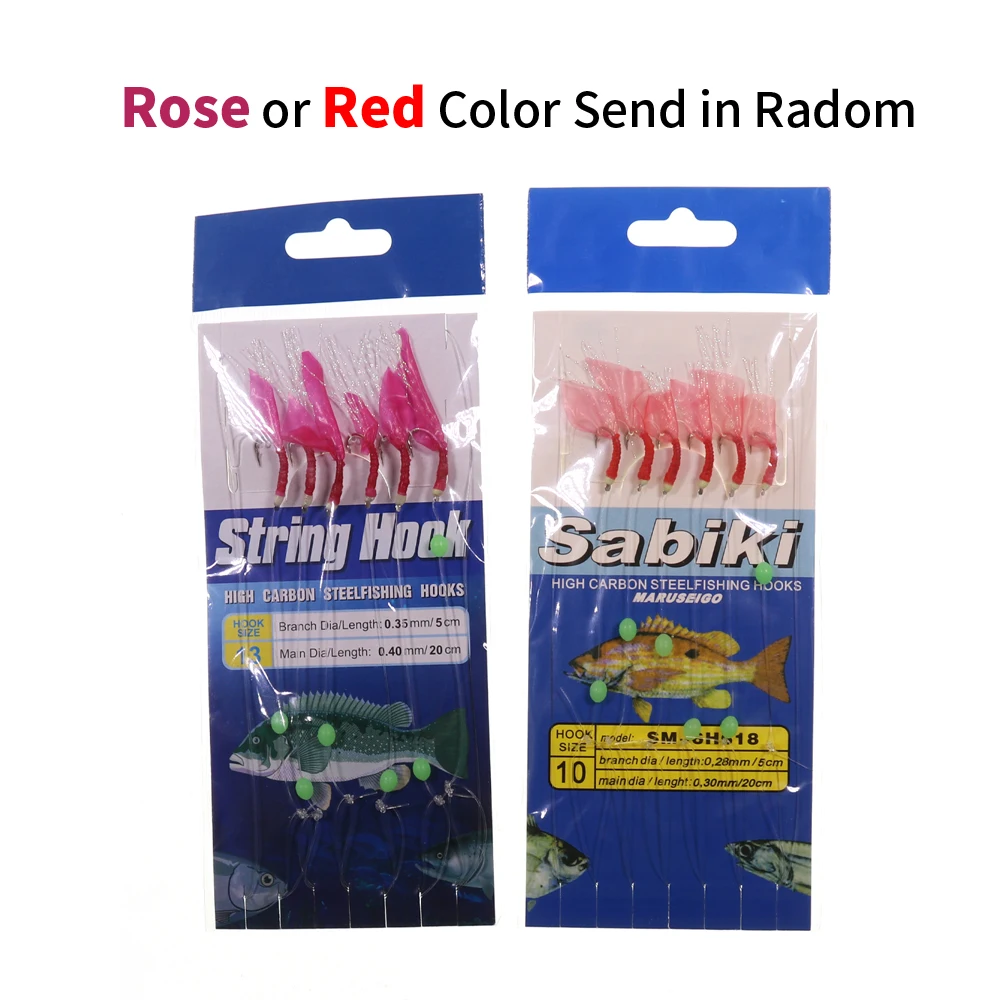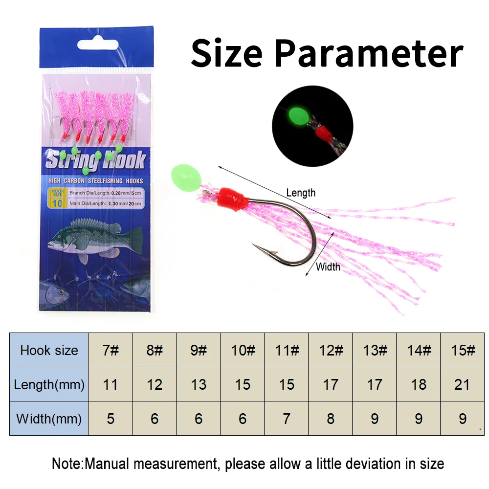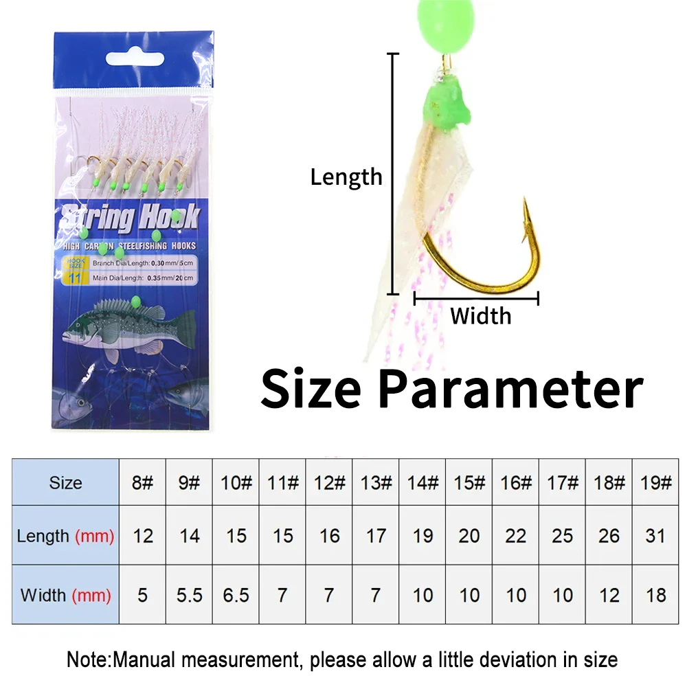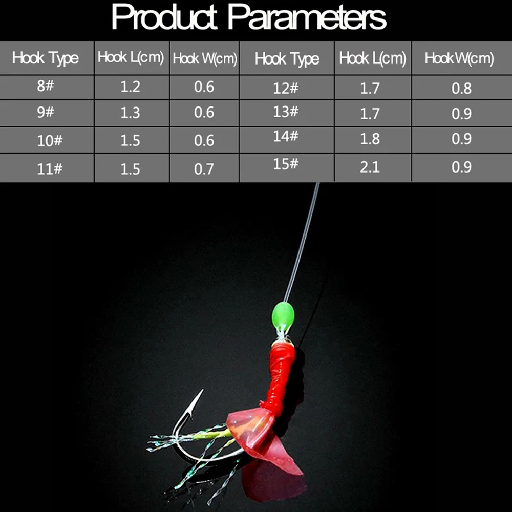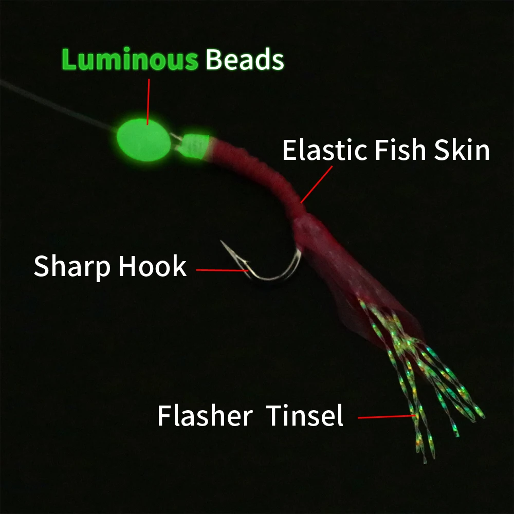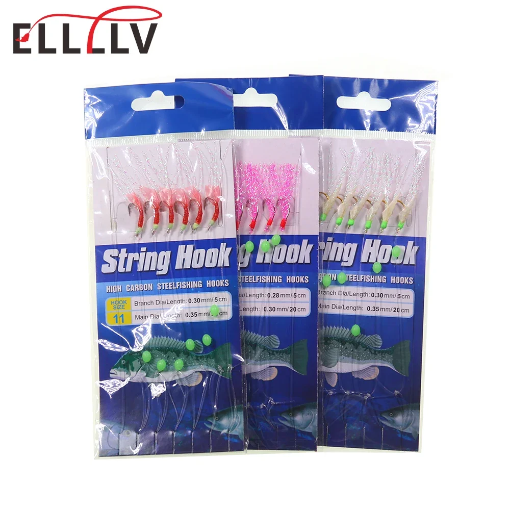 Ellllv 3 bolsas de anzuelos de pesca de camarones suaves luminosos señuelo simulado/Piel de pez Real anzuelos de cadena pesca de agua salada Flash Sabiki Rigs