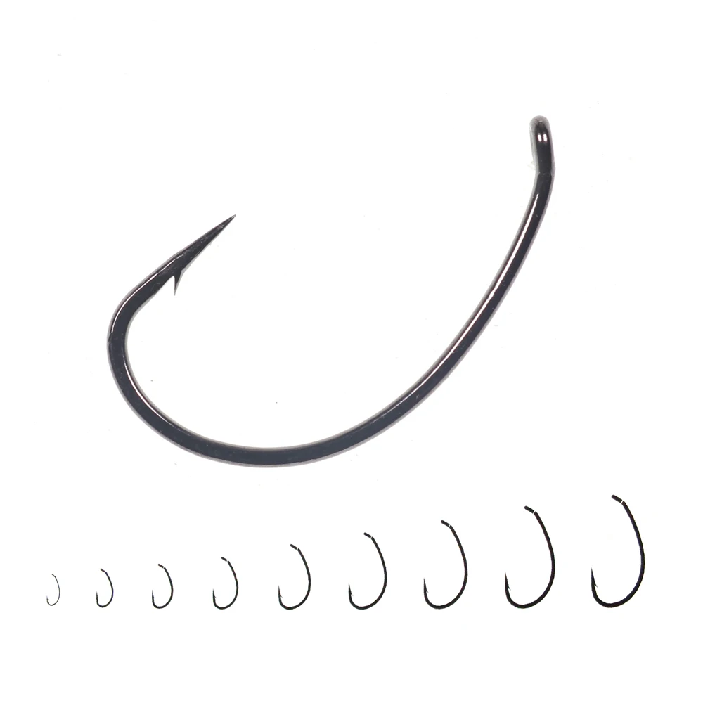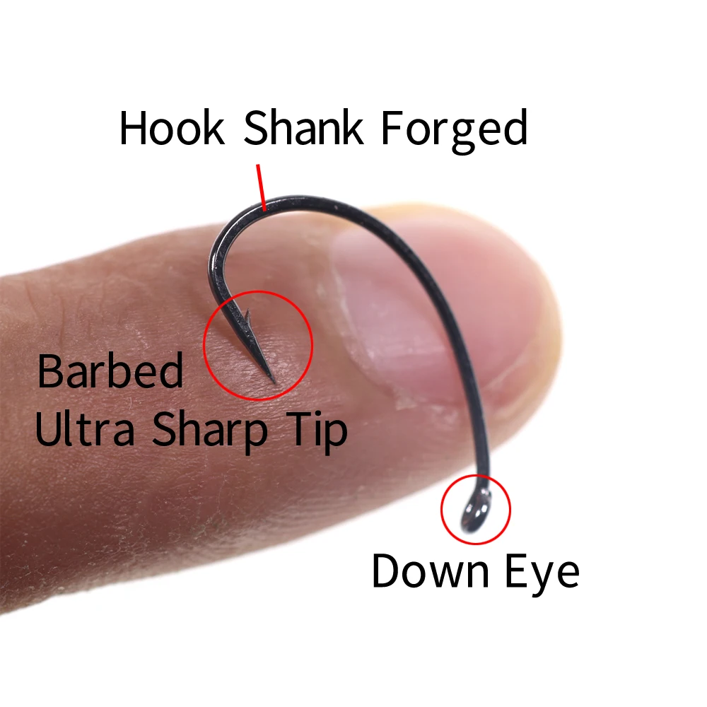 50 piezas de ganchos de atado de moscas de acero de alto carbono curva de amplio espacio Ninfa Camarón Caddis Fly Hook níquel negro de púas #6 #8 #10 #12 #14 #16
